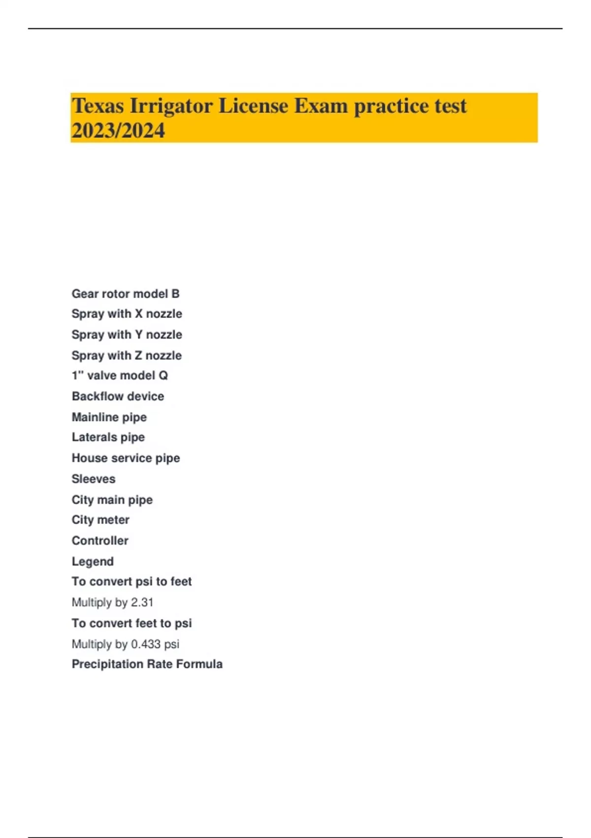 Texas Irrigator License Exam practice test 2023/2024
