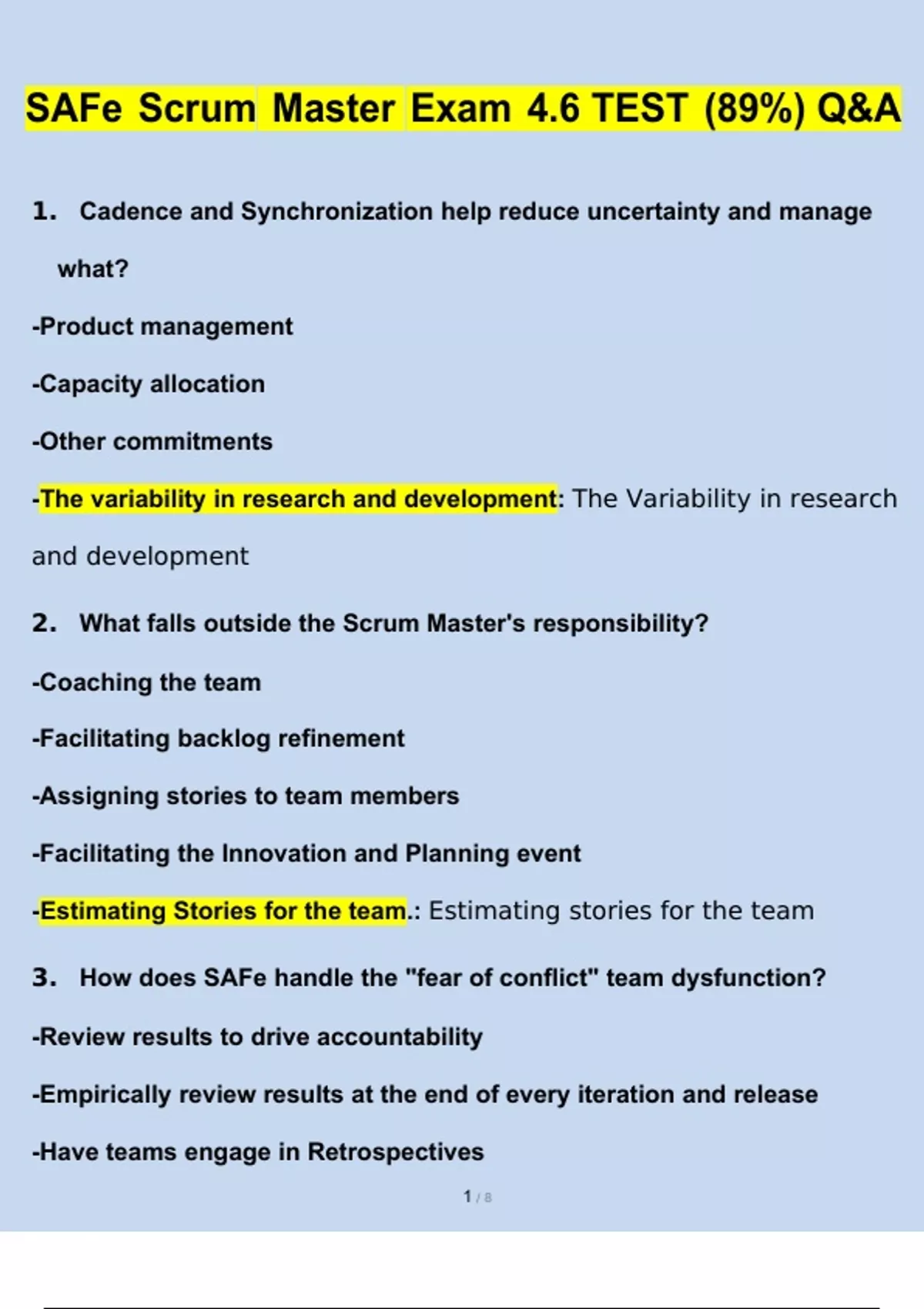SAFe 5 Advanced Scrum Master Exam 4.6 TEST (89%) Newest Questions and Answers (2023 / 2024) (Verified Answers)