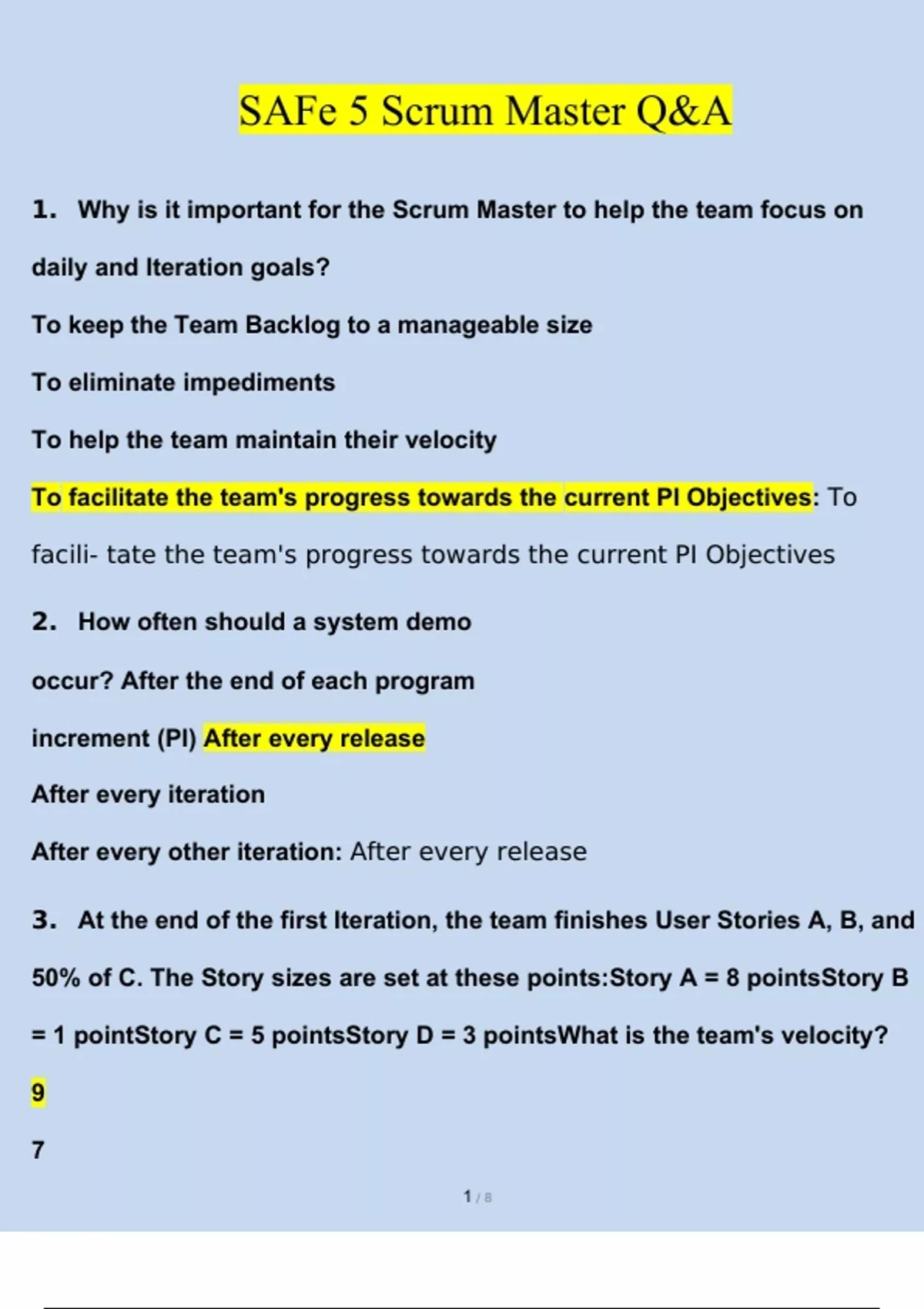 SAFe 5 Scrum Master Newest Questions and Answers (2024 / 2025) (Verified Answers)