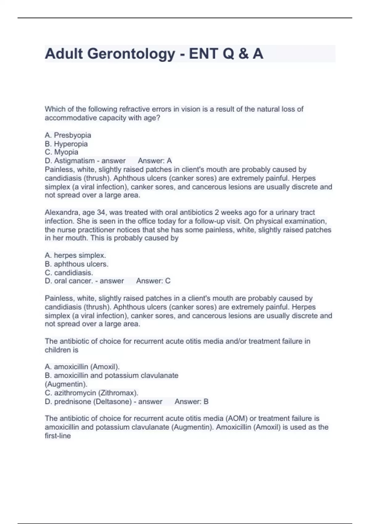Adult Gerontology - ENT Q & A Questions and Answers Graded A+