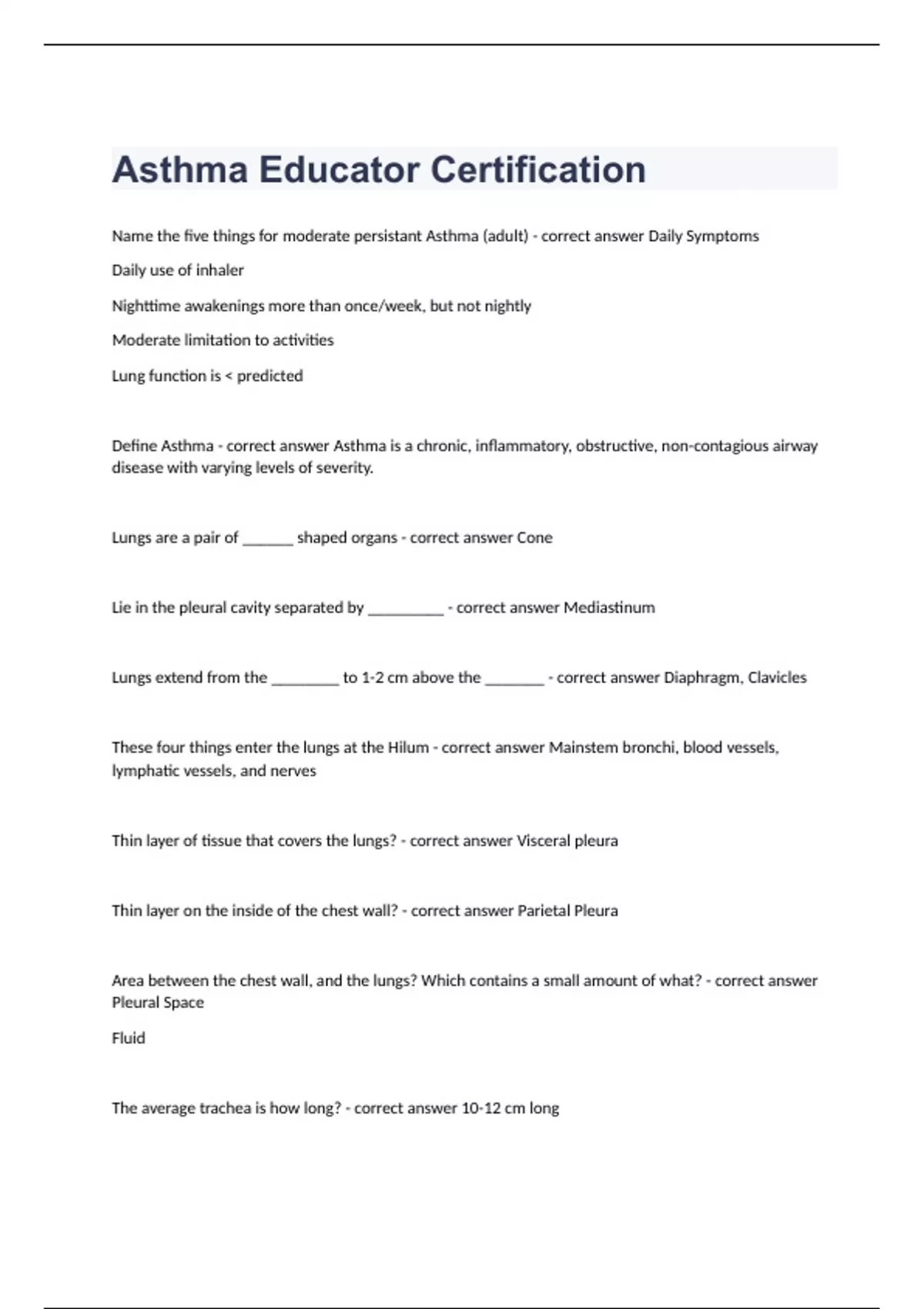 Asthma Educator Certification Question and answers already passed 2023/2024