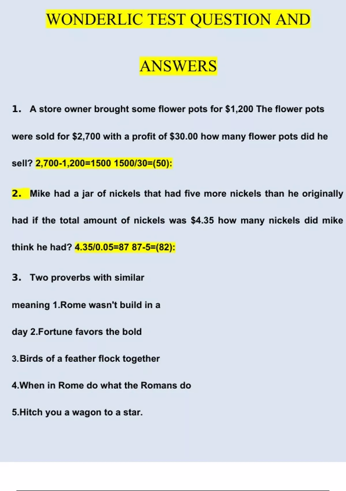 wonderlic test Questions with 100% correct Answers | Latest 2023/2024 solutions