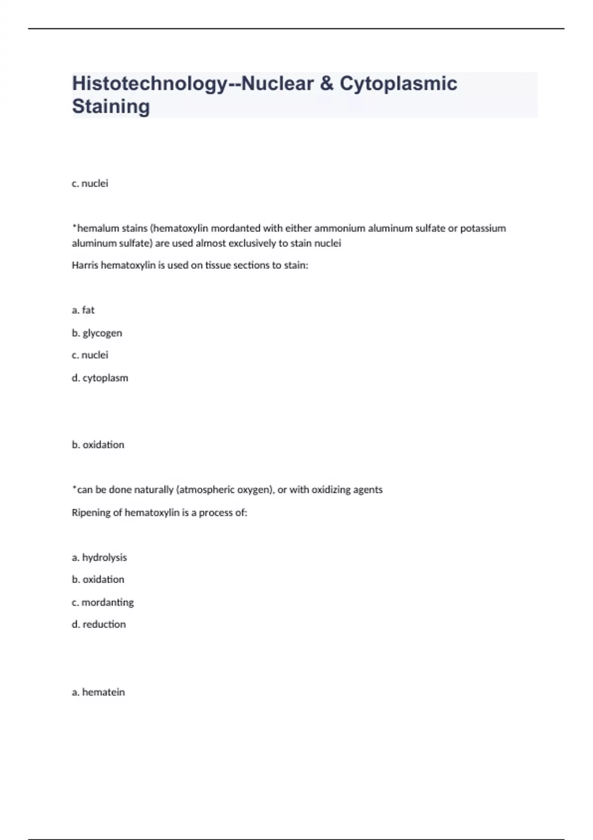 Histotechnology--Nuclear & Cytoplasmic Staining fully solved rated A+ already passed 2023/2024