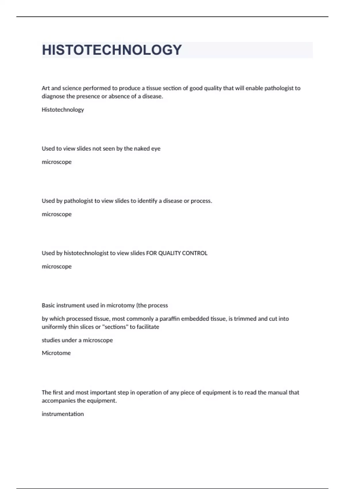 HISTOTECHNOLOGY(fully solved)graded A+ 2023/2024