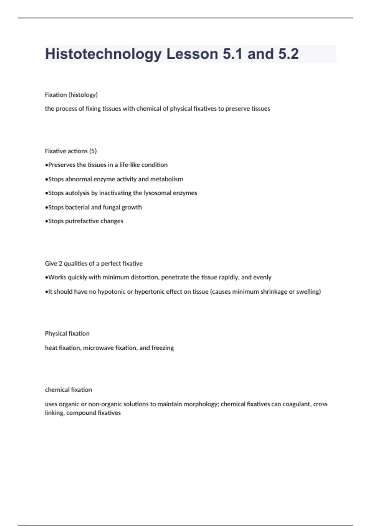 Histotechnology Lesson 5.1 and 5.2 question n answers graded A+