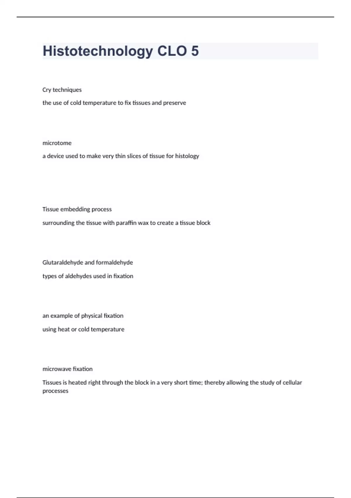 Histotechnology CLO 5 questions & answers graded A+ 2023/2024