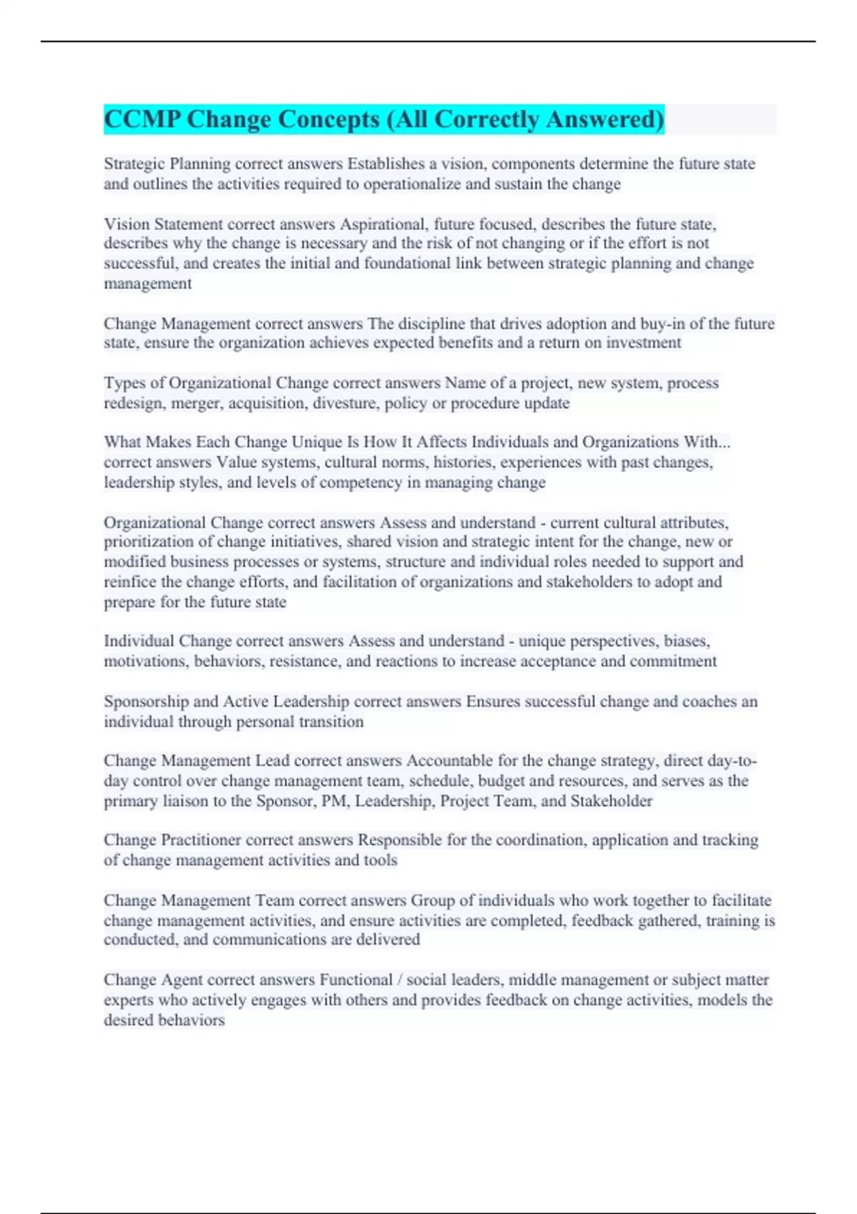 CCMP Change Concepts (All Correctly Answered)