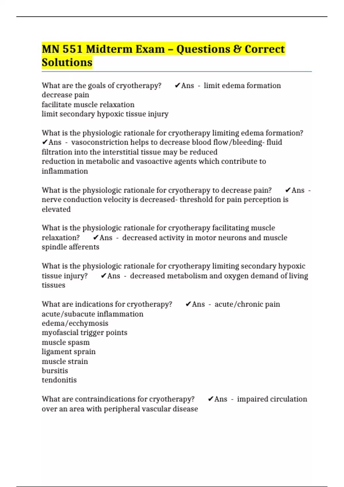 MN 551 Midterm Exam – Questions & Correct Solutions