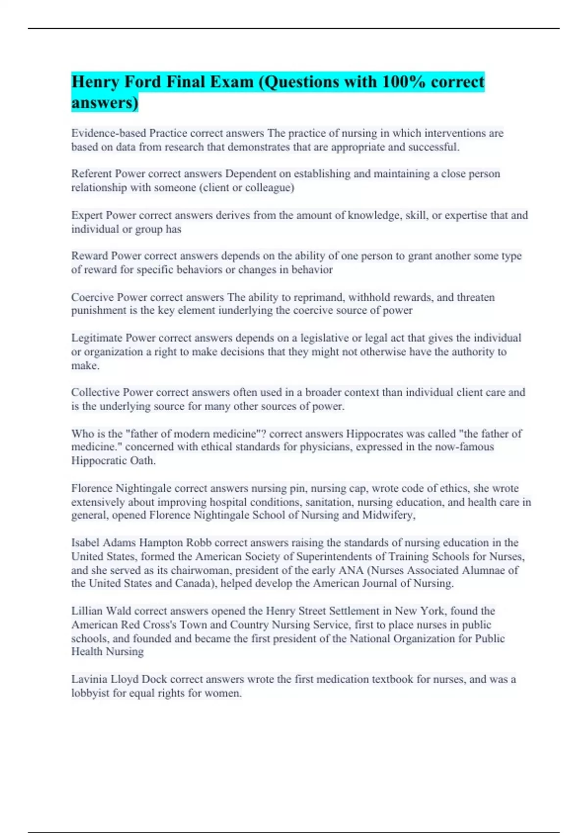 Henry Ford Final Exam (Questions with 100% correct answers)