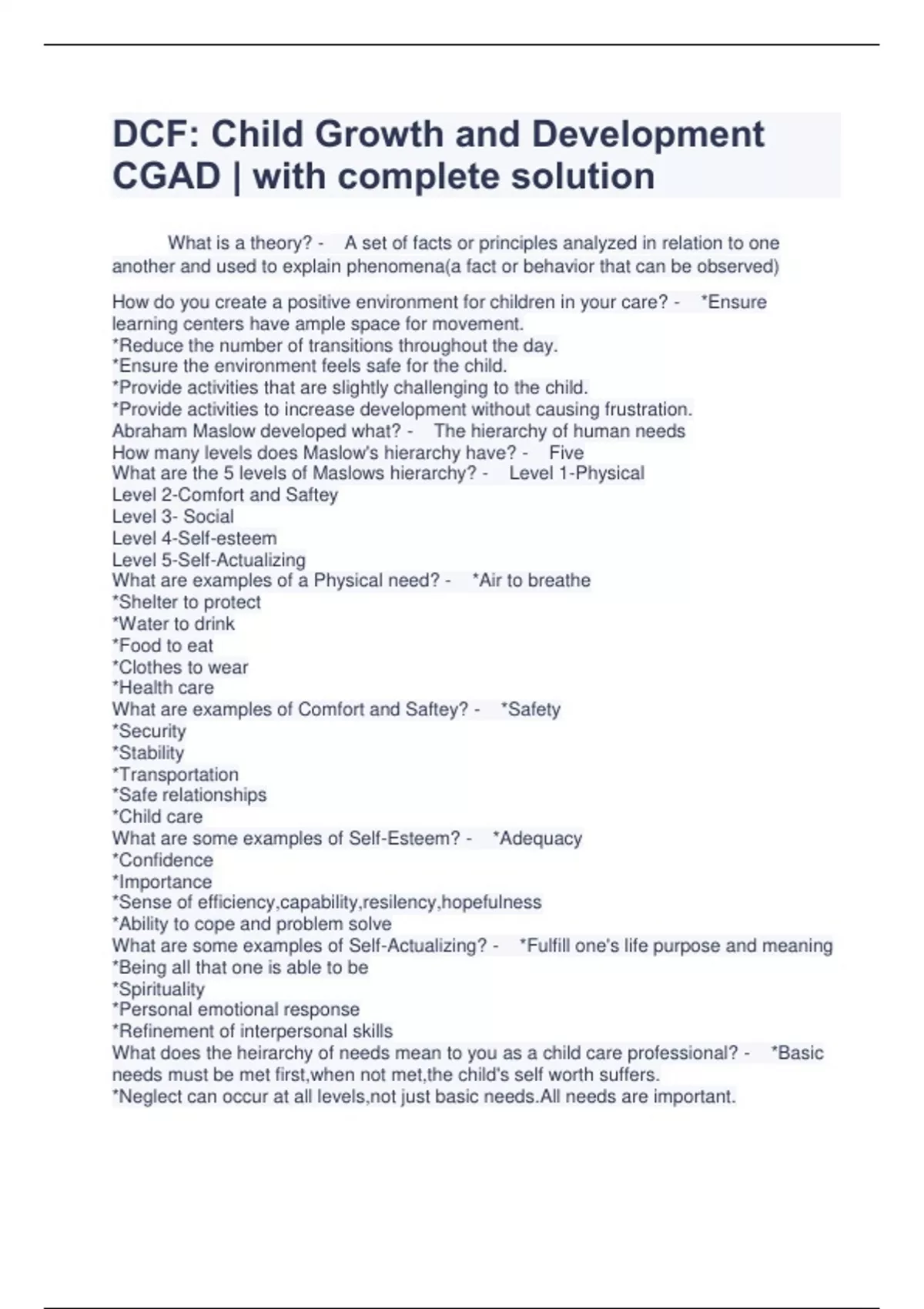 DCF: Child Growth and Development CGAD | with complete solution