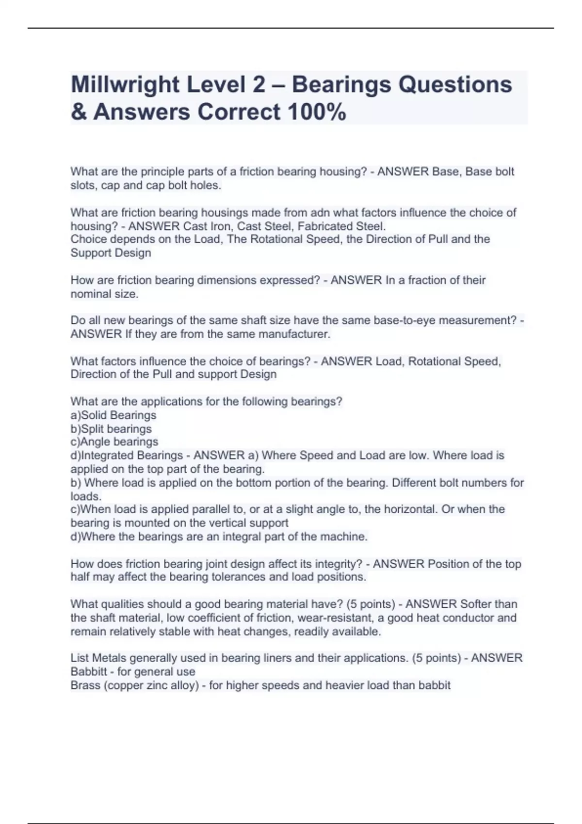 Millwright Level 2 – Bearings Questions & Answers Correct 100%
