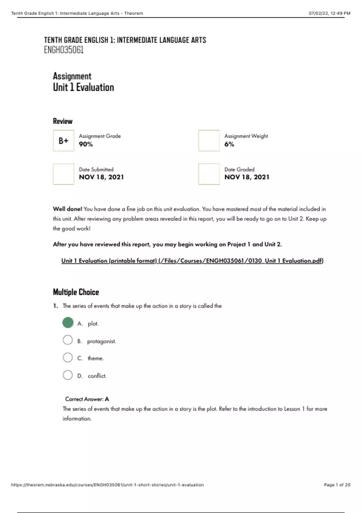 ENGLISH 394 Tenth Grade English 1: Intermediate Language Arts - Theorem/ENGLISH 394 Tenth Grade English 1: Intermediate Language Arts - Theorem