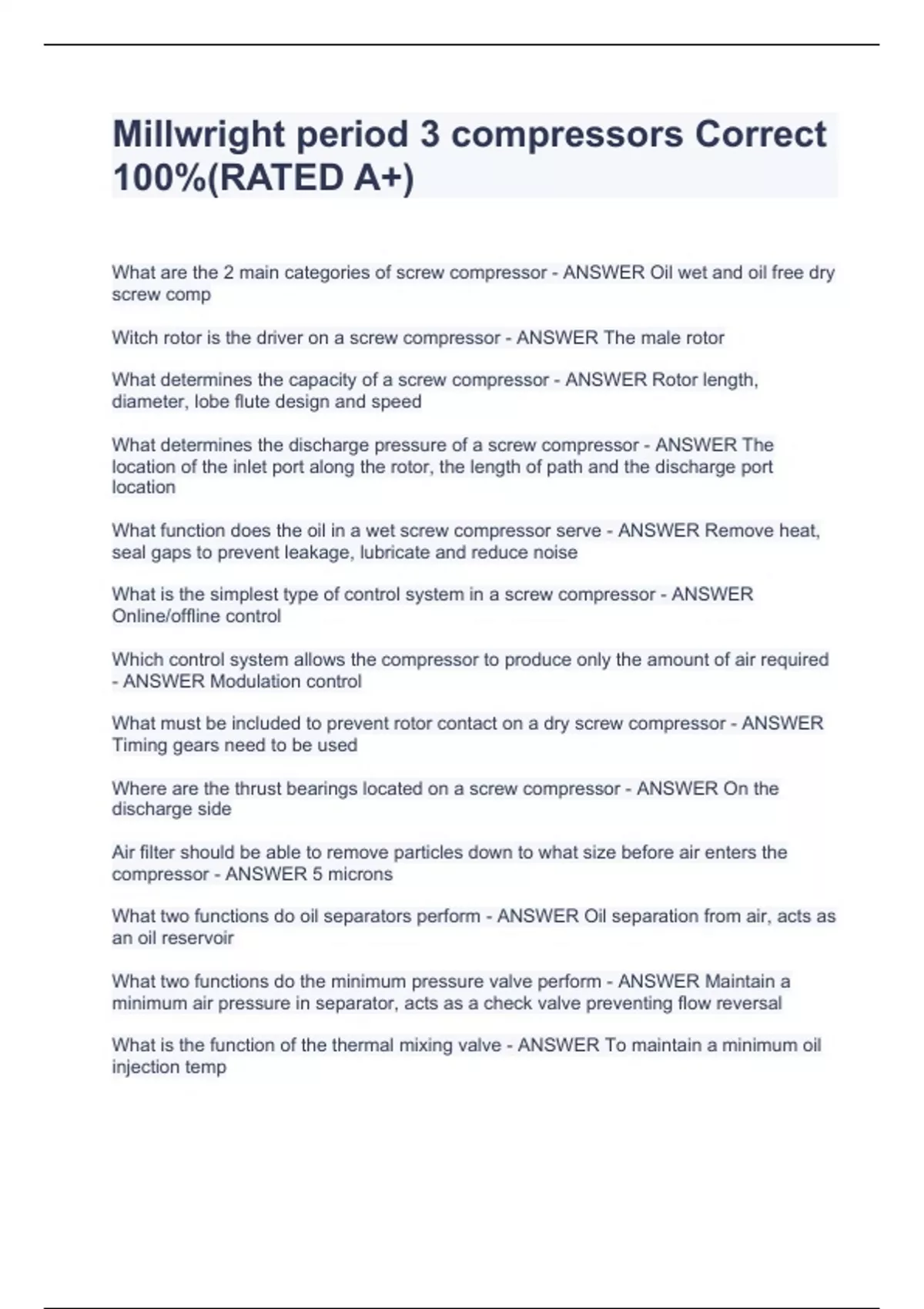 Millwright period 3 compressors Correct 100%(RATED A+)