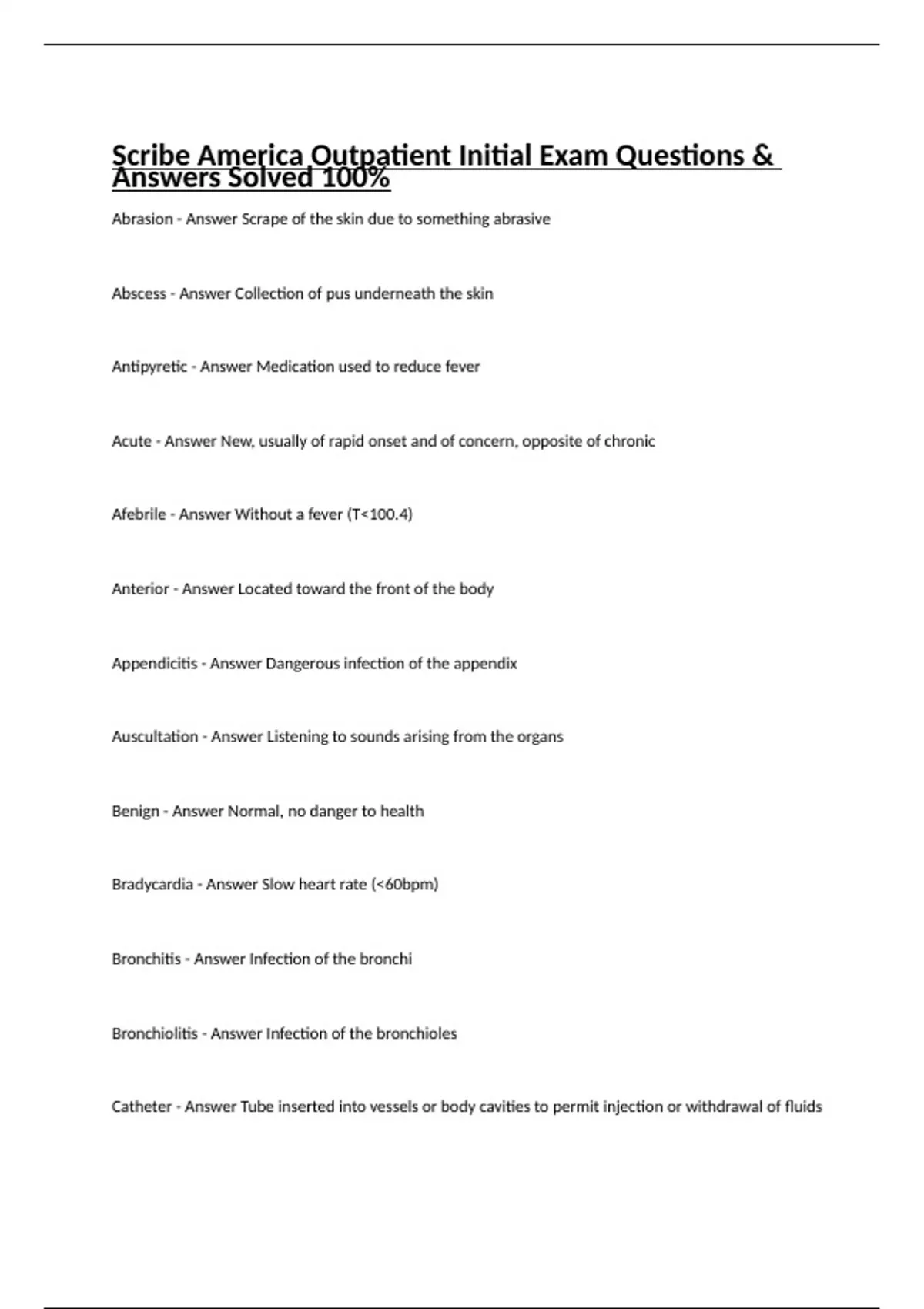Scribe America Outpatient Initial Exam Questions & Answers Solved 100%