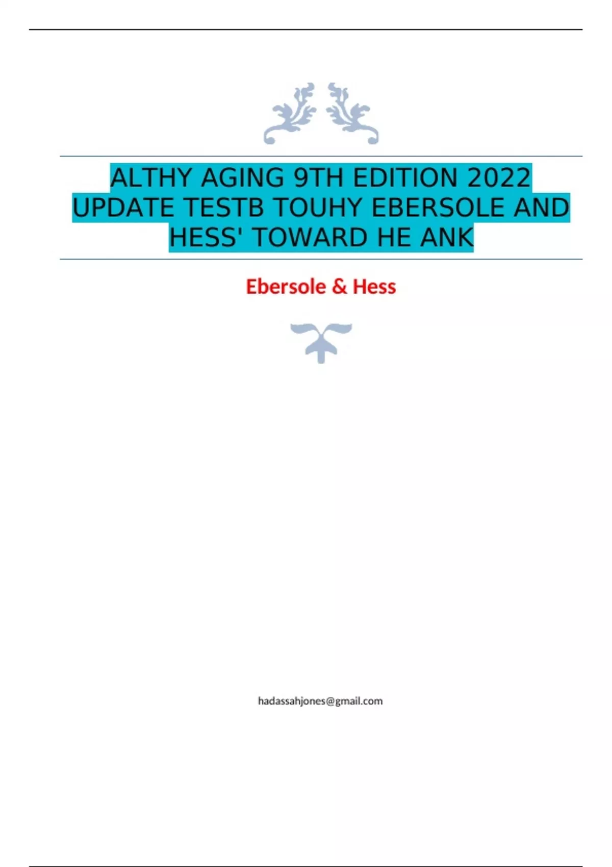 ALTHY AGING 9TH EDITION 2022 UPDATE TESTB TOUHY EBERSOLE AND HESS' TOWARD HE ANK