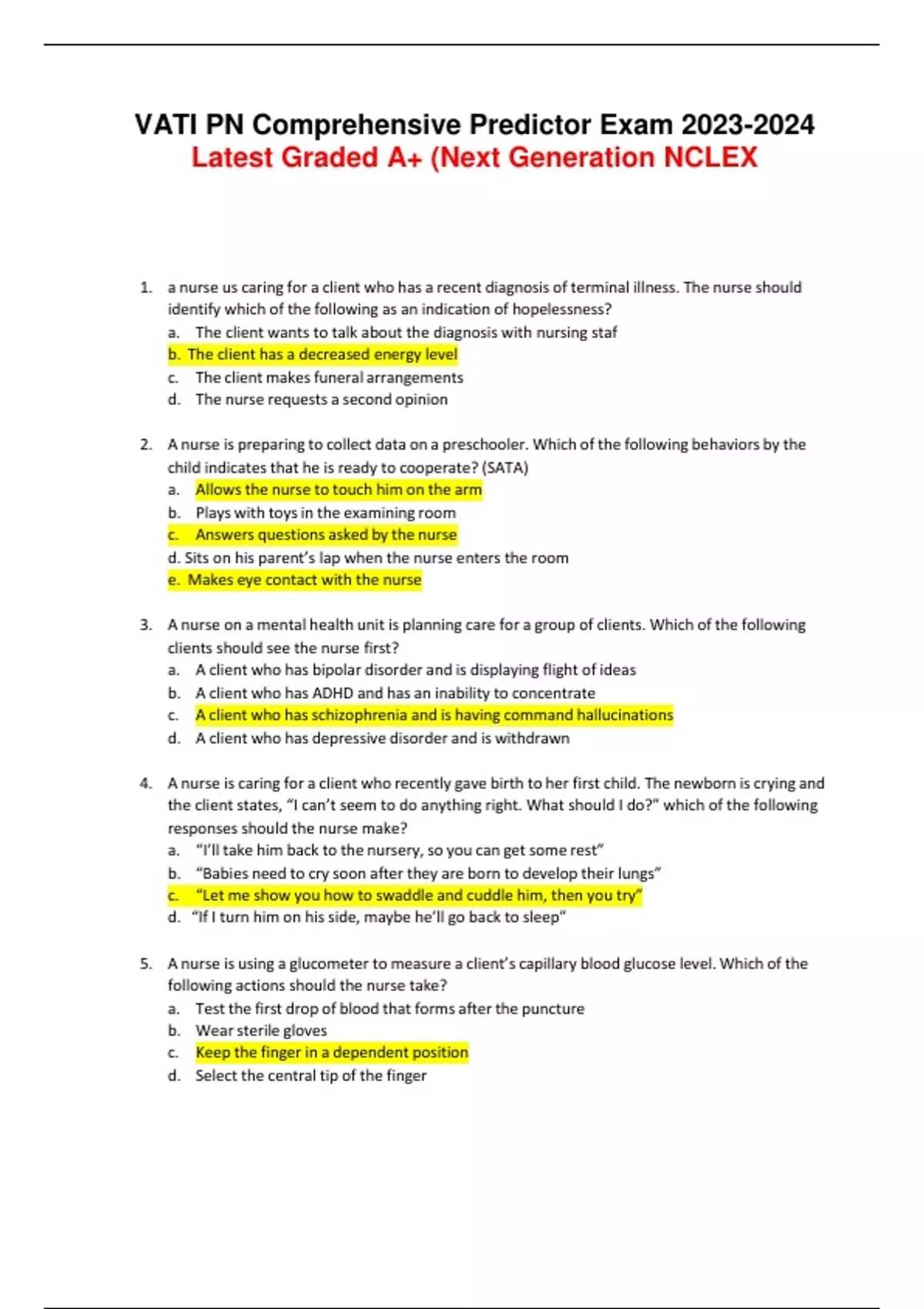 VATI PN Comprehensive Predictor Exam 2024 Latest Graded A+ (Next Generation NCLEX