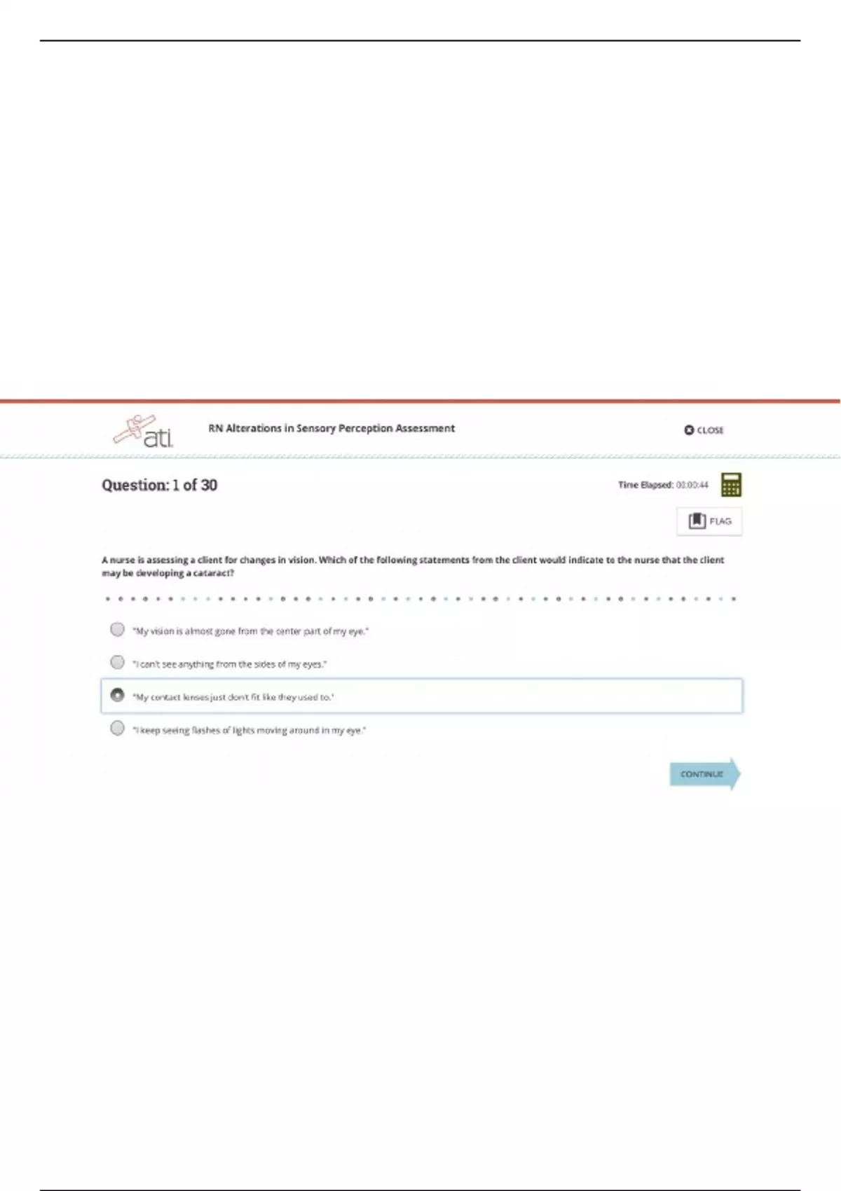 ATI ENGAGE ADULT MEDICAL SURGICAL RN 3.0 RN ALTERATIONS IN SENSORY PERCEPTION ASSESSMENT