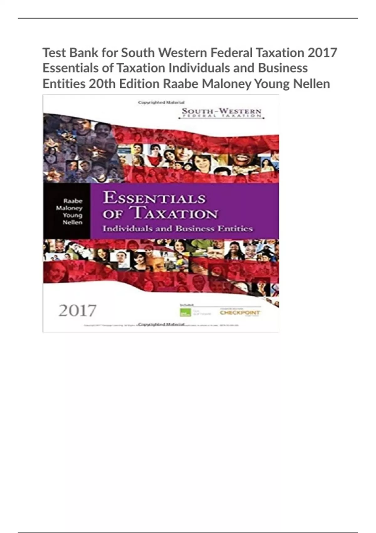 Test Bank for South Western Federal Taxation 2017 Essentials of Taxation Individuals and Business Entities 20th Edition Raabe Maloney Young Nellen