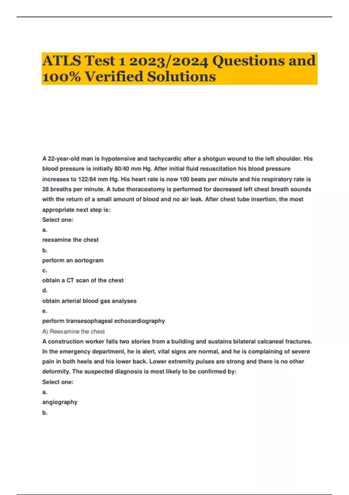 ATLS FULL TESTS QUESTIONS AND 100% VERIFIED SOLUTIONS