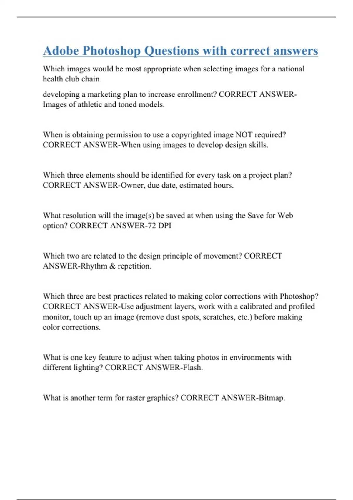 Adobe Photoshop Questions with correct answers