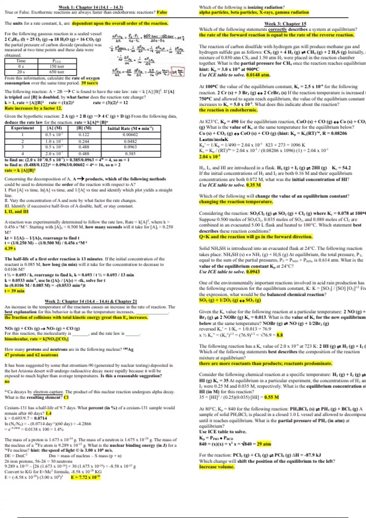 The units for a rate constant, k, are: dependent upon the overall order of the reaction. Week 3: Chapter 15