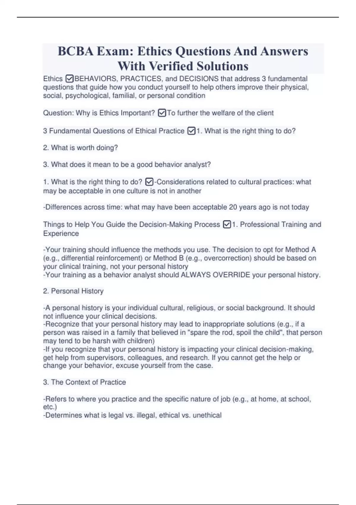 BCBA Exam: Ethics Questions And Answers With Verified Solutions BCBA Exam: Ethics Questions And Answers With Verified Solutions