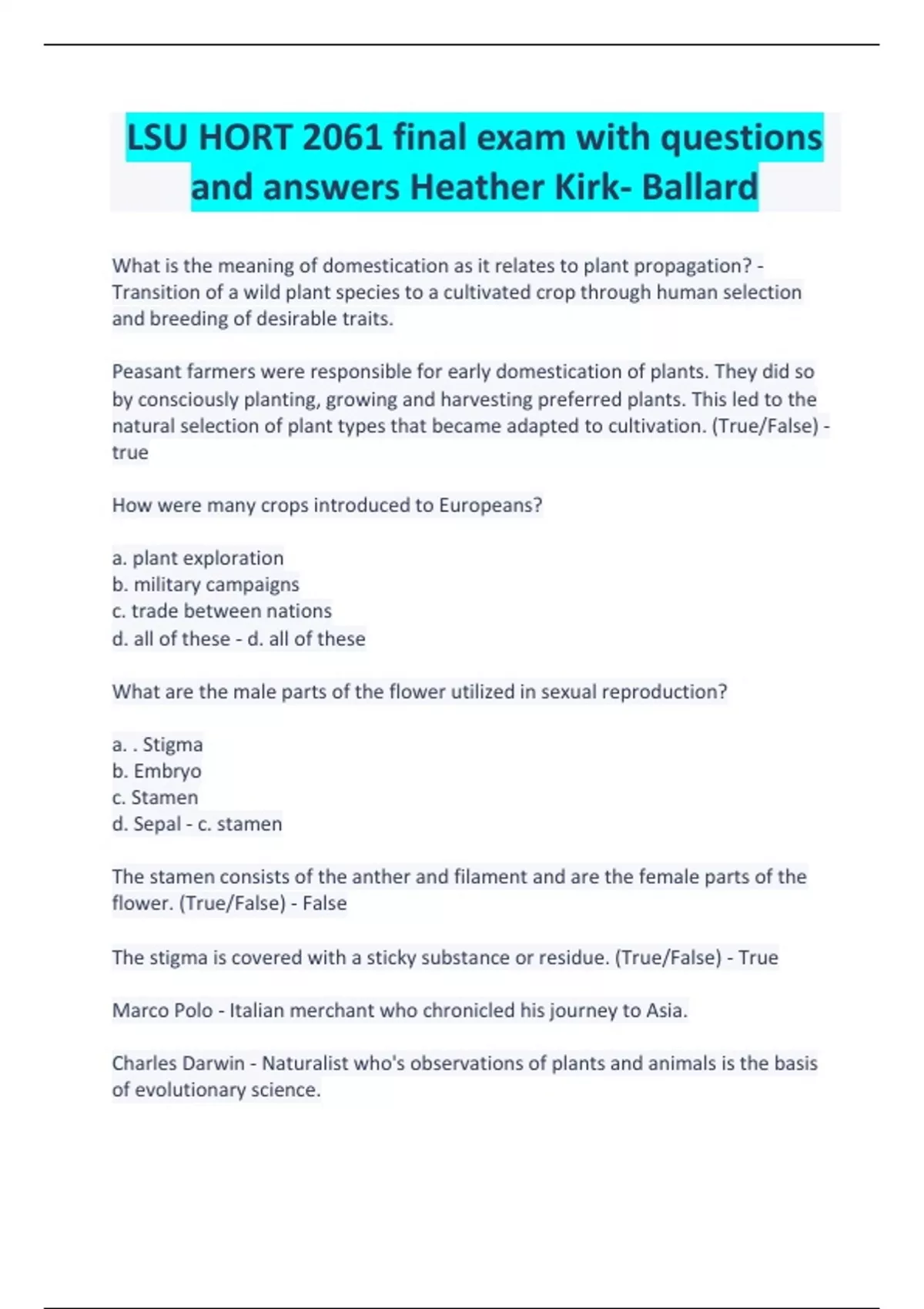 LSU HORT 2061 final exam with questions and answers Heather Kirk- Ballard