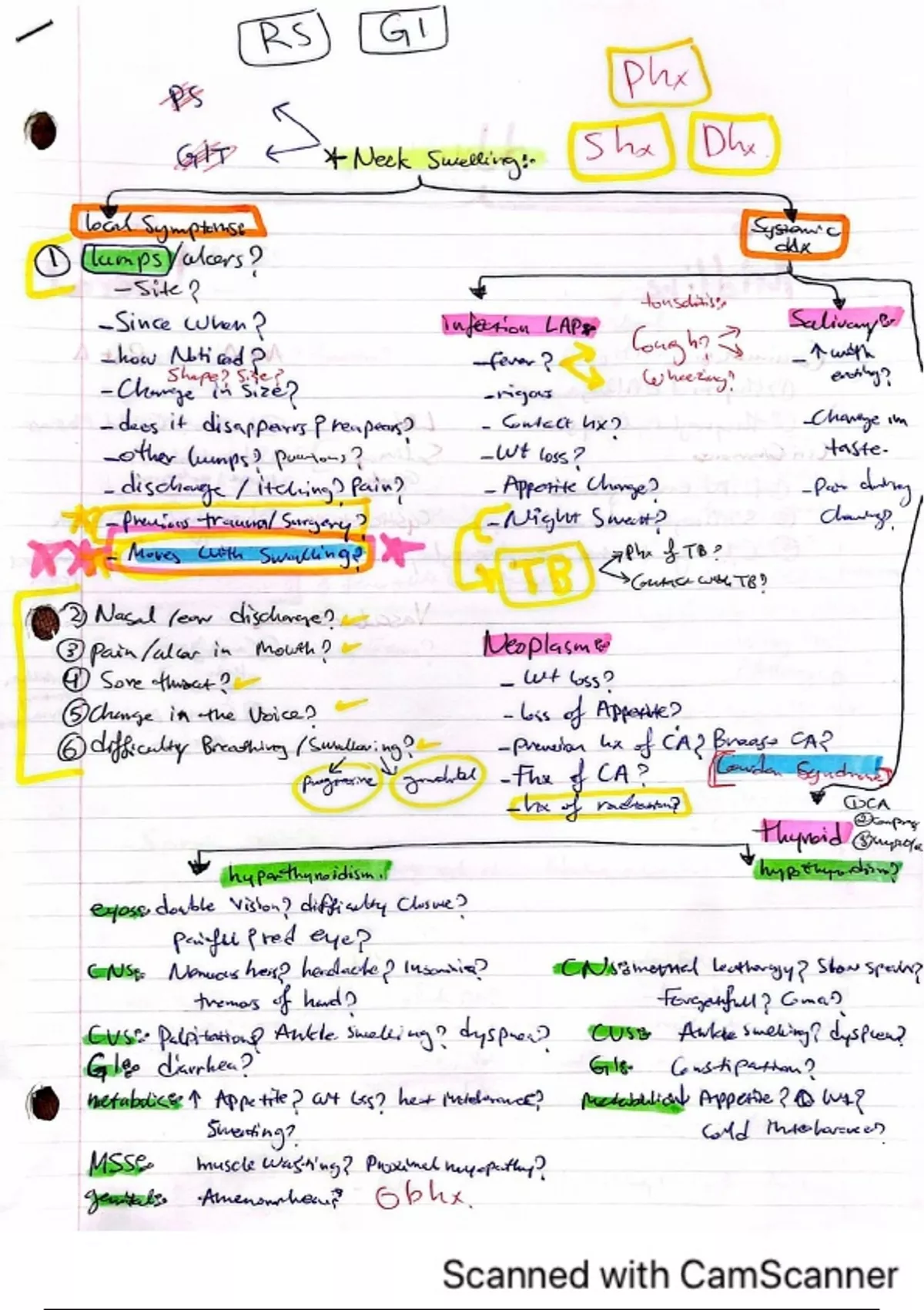 Summary neck swelling history taking