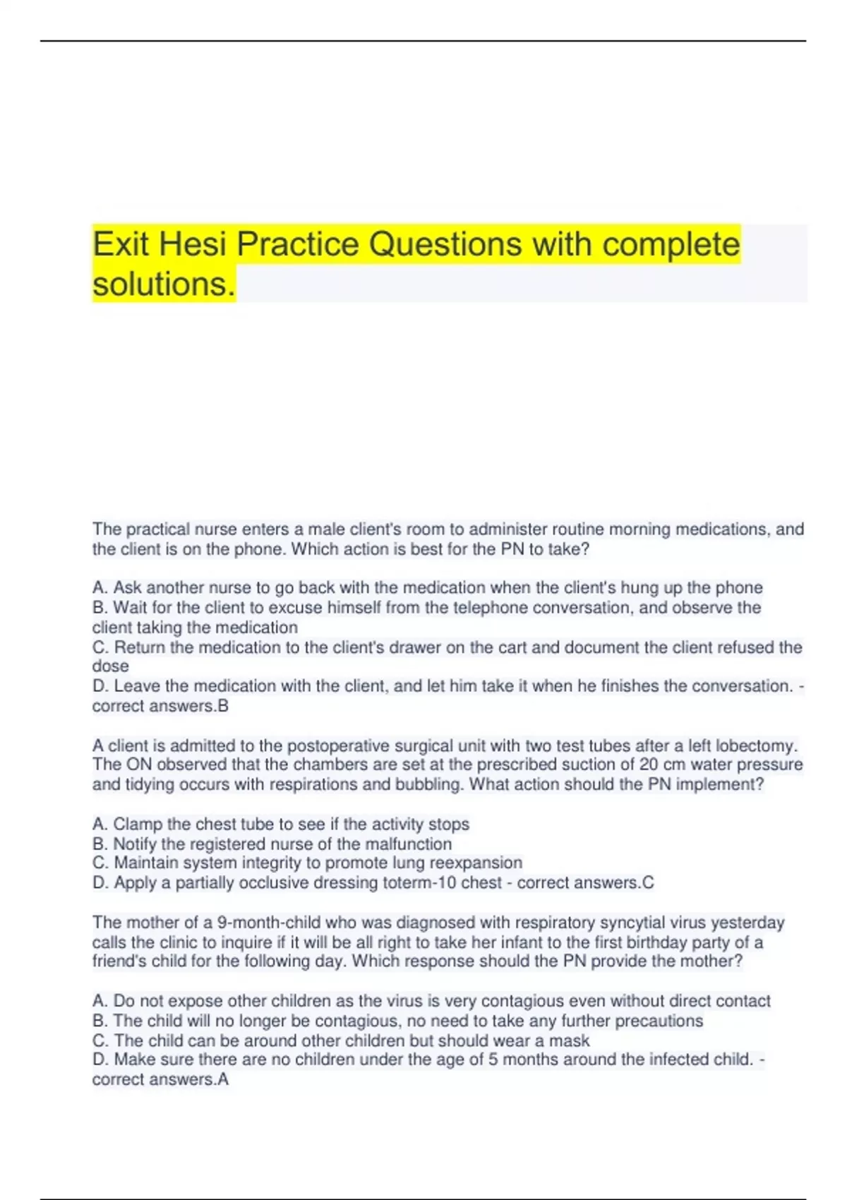 Exit Hesi Practice Questions with complete solutions.