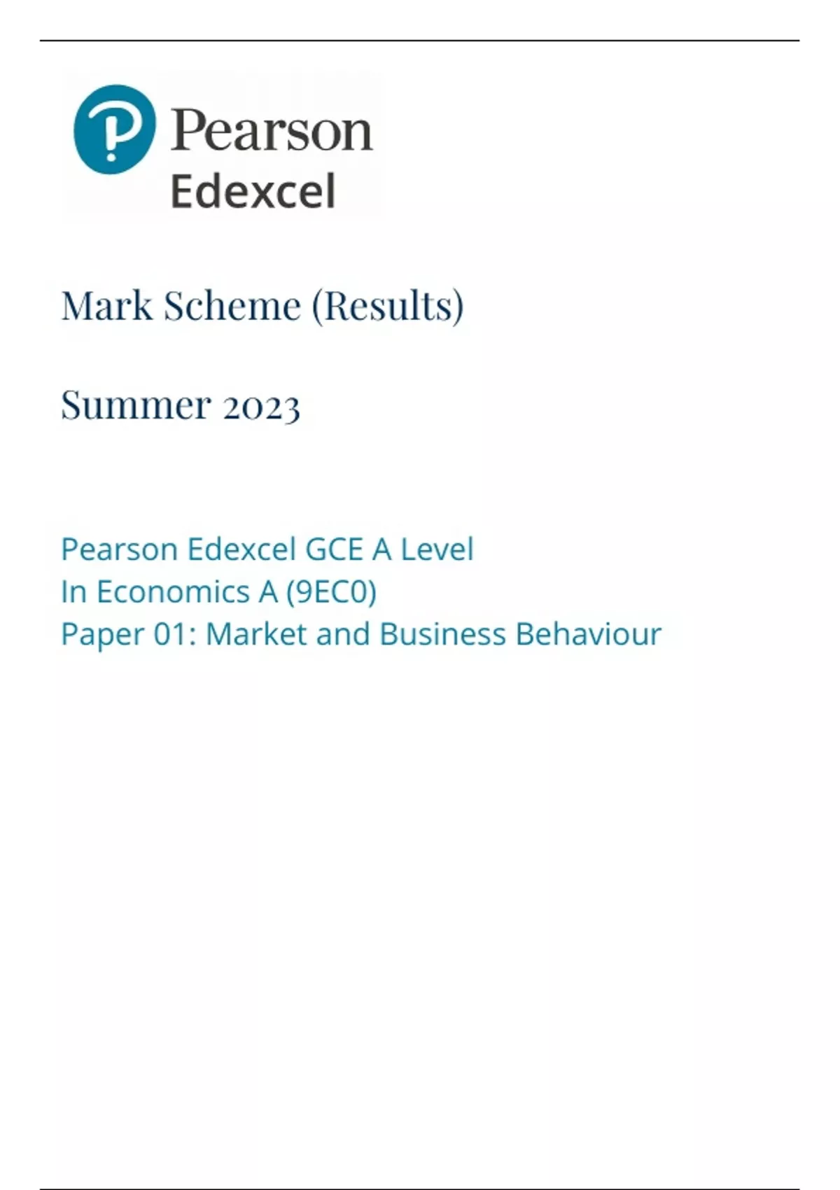 Edexcel A Level Economics (A) Paper 1 Mark Scheme June 2023