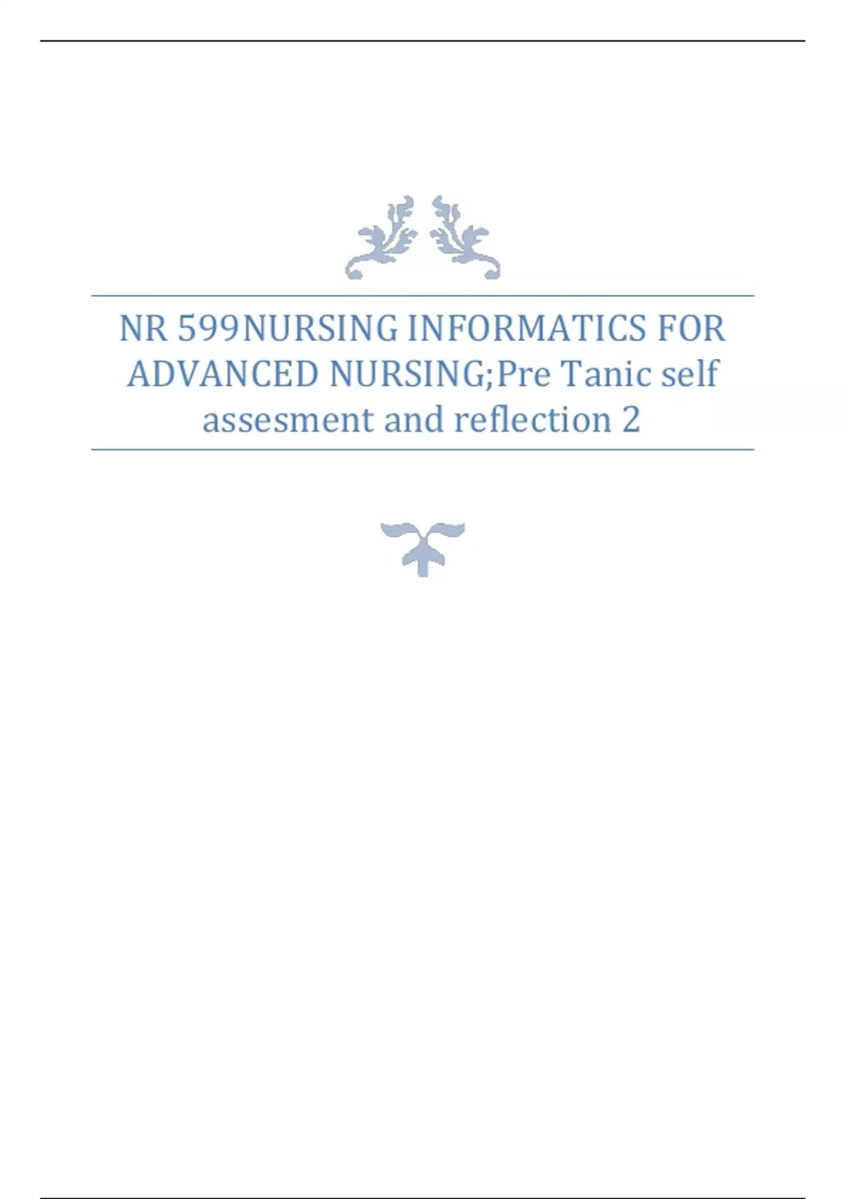 NR 599NURSING INFORMATICS FOR ADVANCED NURSING;Pre Tanic self assesment and reflection 2