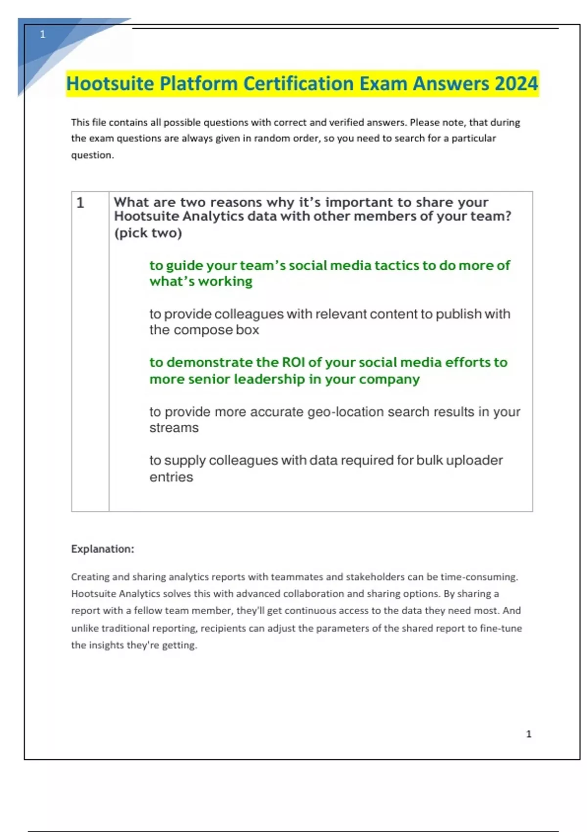 Hootsuite Certification Platform Exam Questions and Answers 2024.