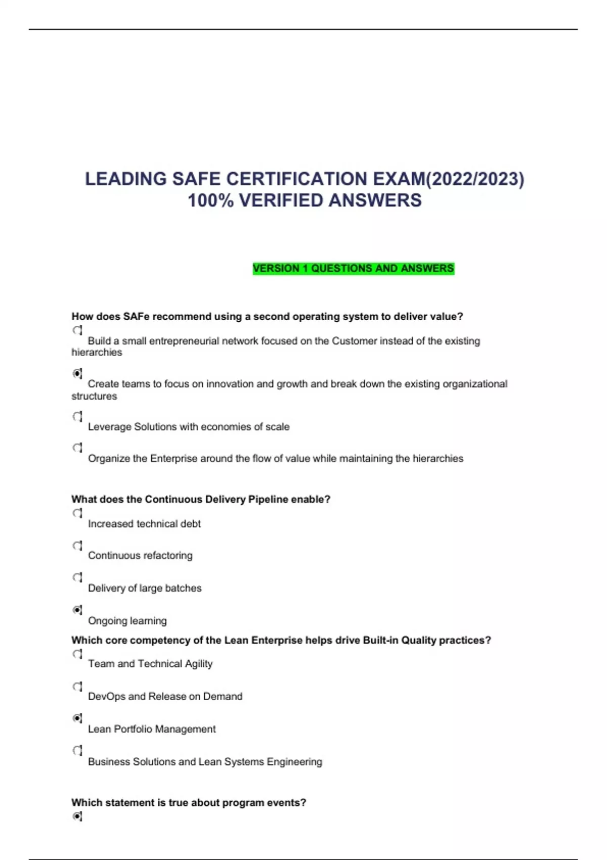 LEADING SAFE CERTIFICATION EXAM(2022/2023) 100% VERIFIED ANSWERS