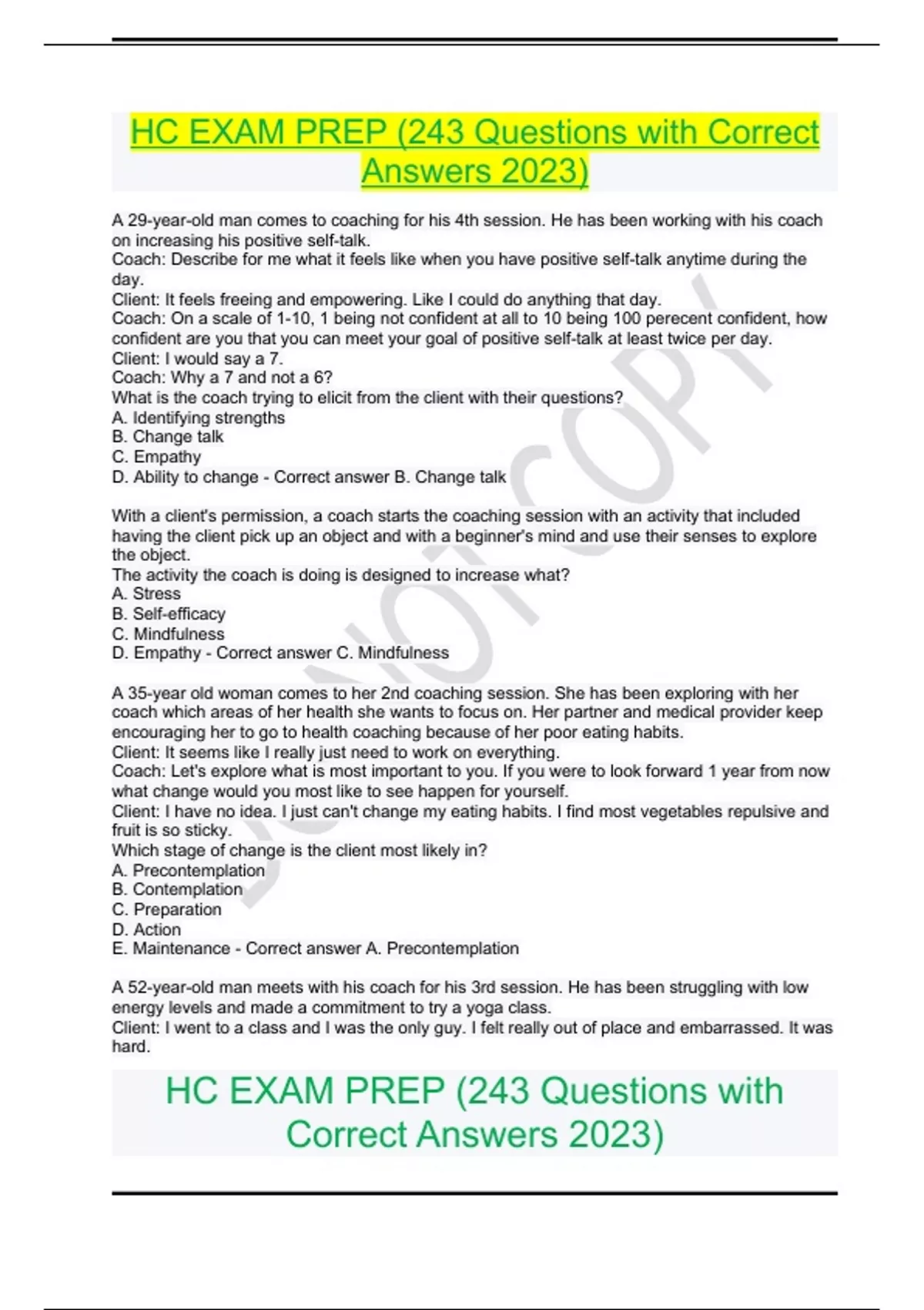 hc exam prep 243 questions with correct answers 2