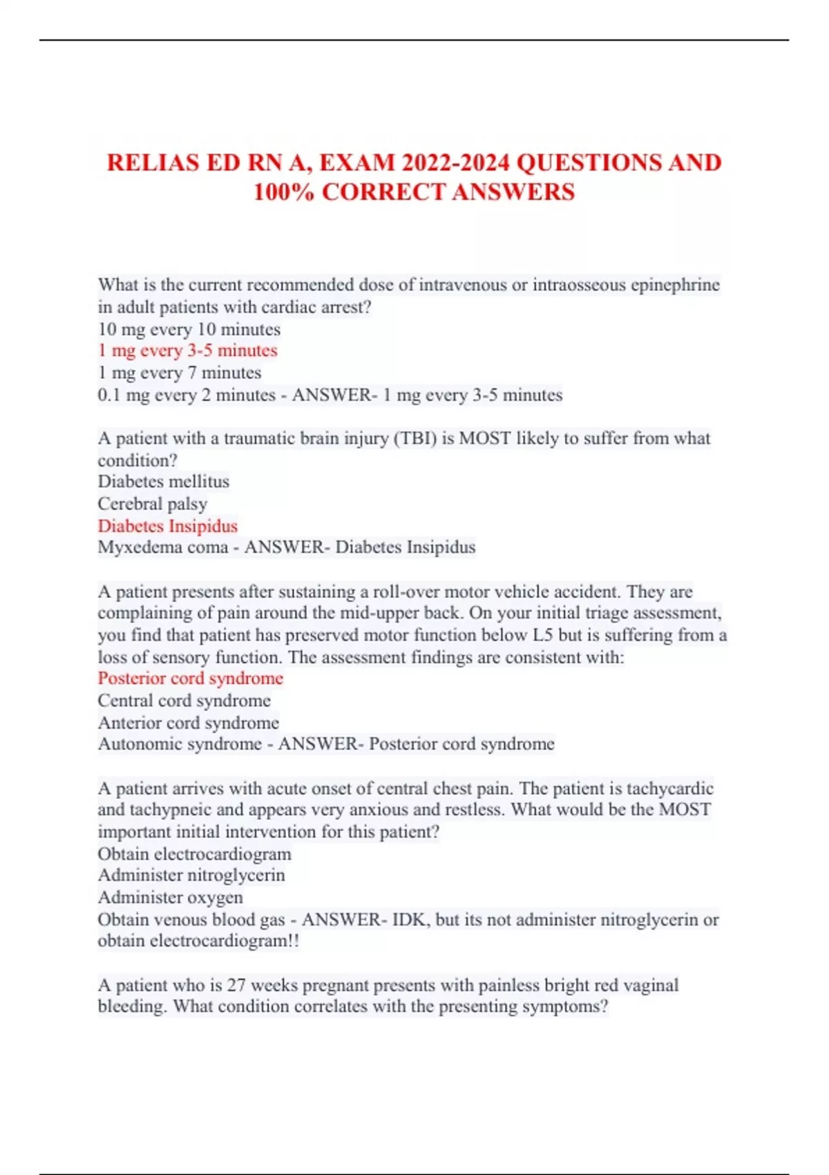 Exam of 24 pages for the course RN Relias at RN Relias (RELIAS ED RN)