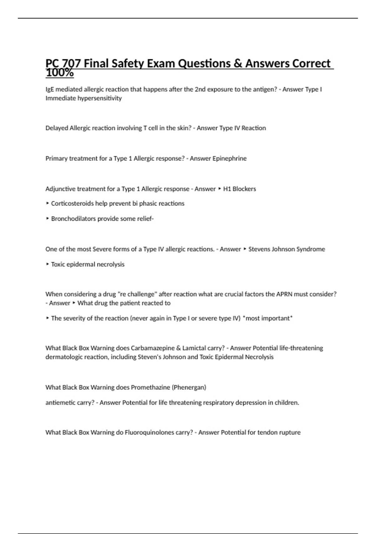 PC 707 Final Safety Exam Questions & Answers Correct 100%