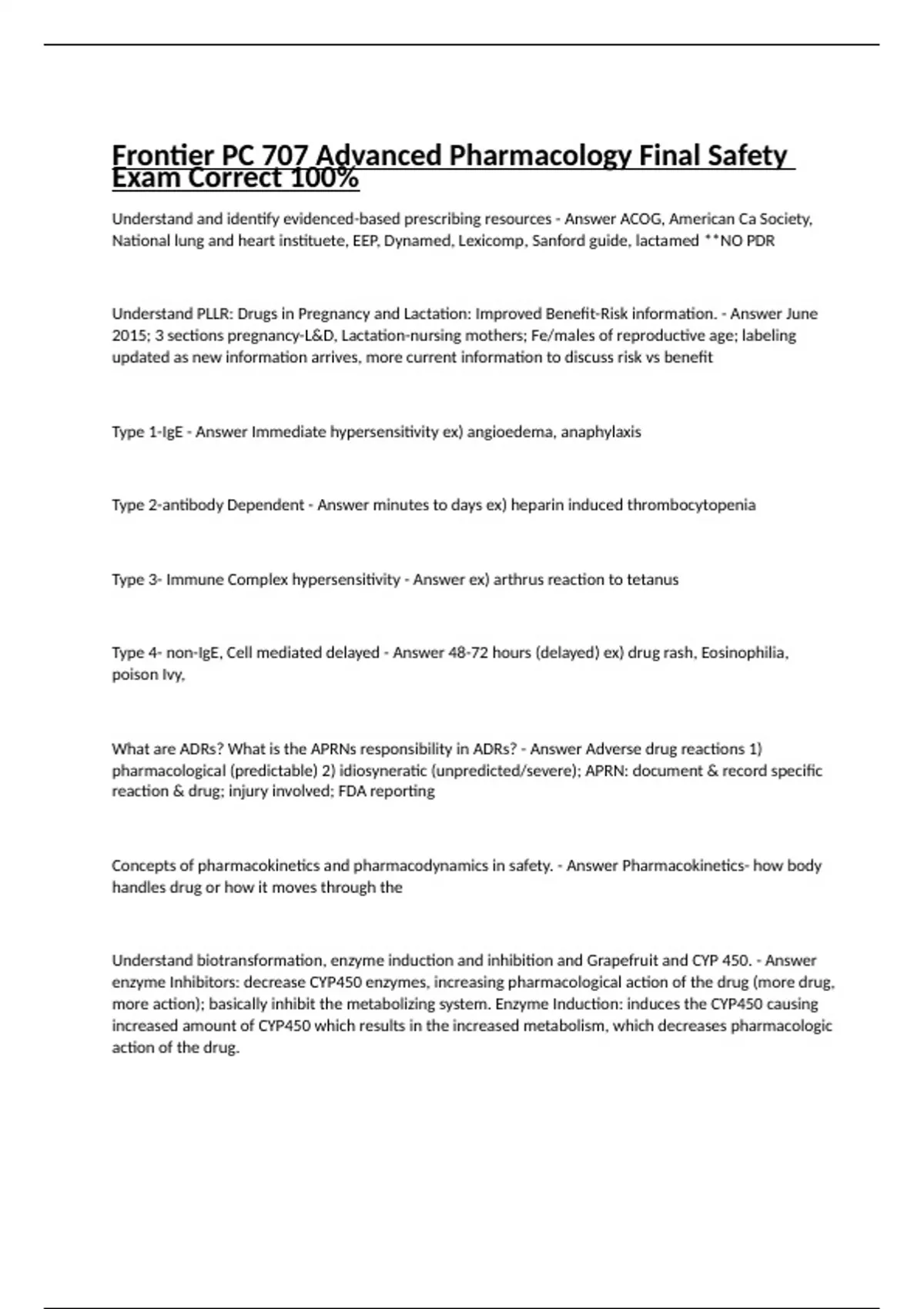 Frontier PC 707 Advanced Pharmacology Final Safety Exam Correct 100%