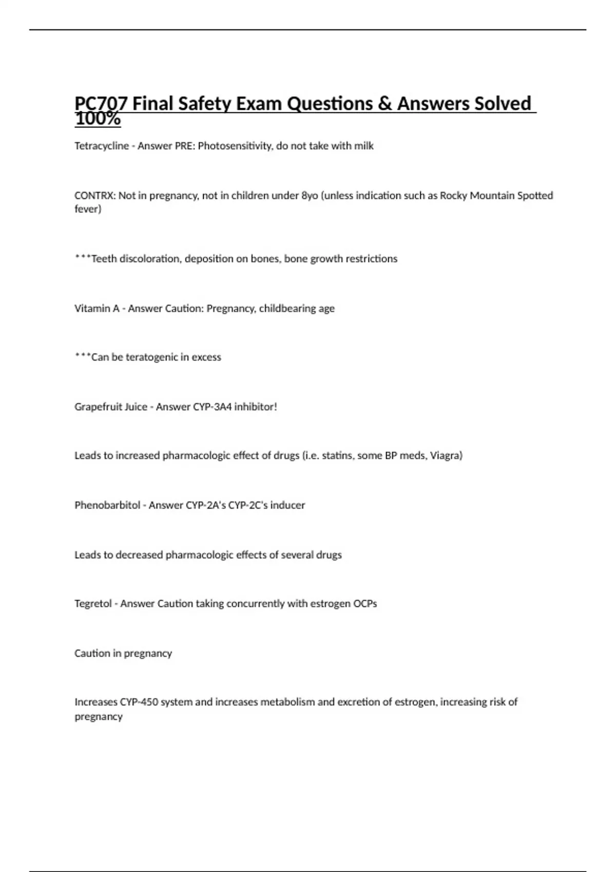 PC707 Final Safety Exam Questions & Answers Solved 100%