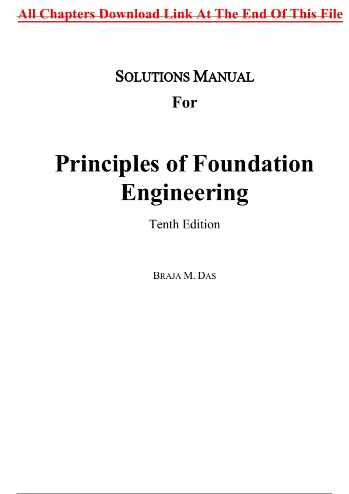 Solutions Manual For Principles of Foundation Engineering 10th Edition By Braja Das (All Chapters, 100% original verified, A+ Grade) Solutions Manual For Principles of Foundation Engineering 10th Edition By Braja Das (All Chapters, 100% original verified, A+ Grade)