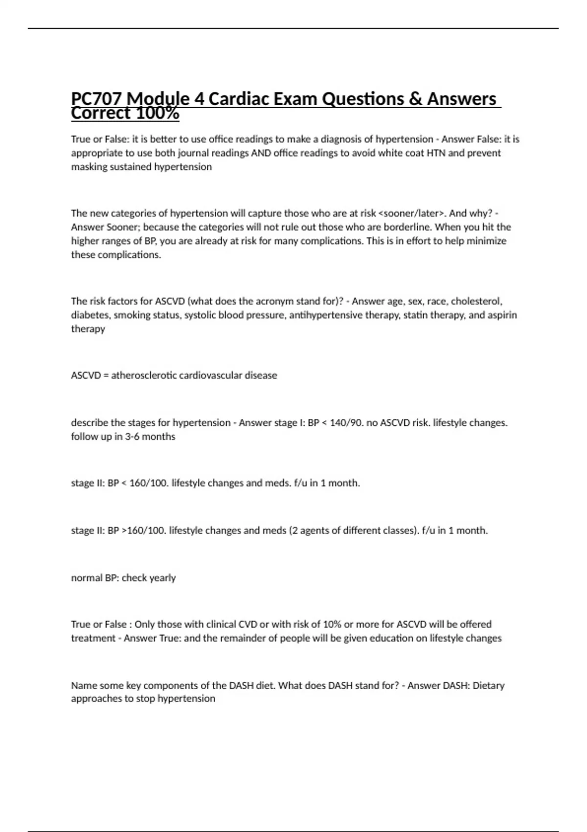PC707 Module 4 Cardiac Exam Questions & Answers Correct 100%