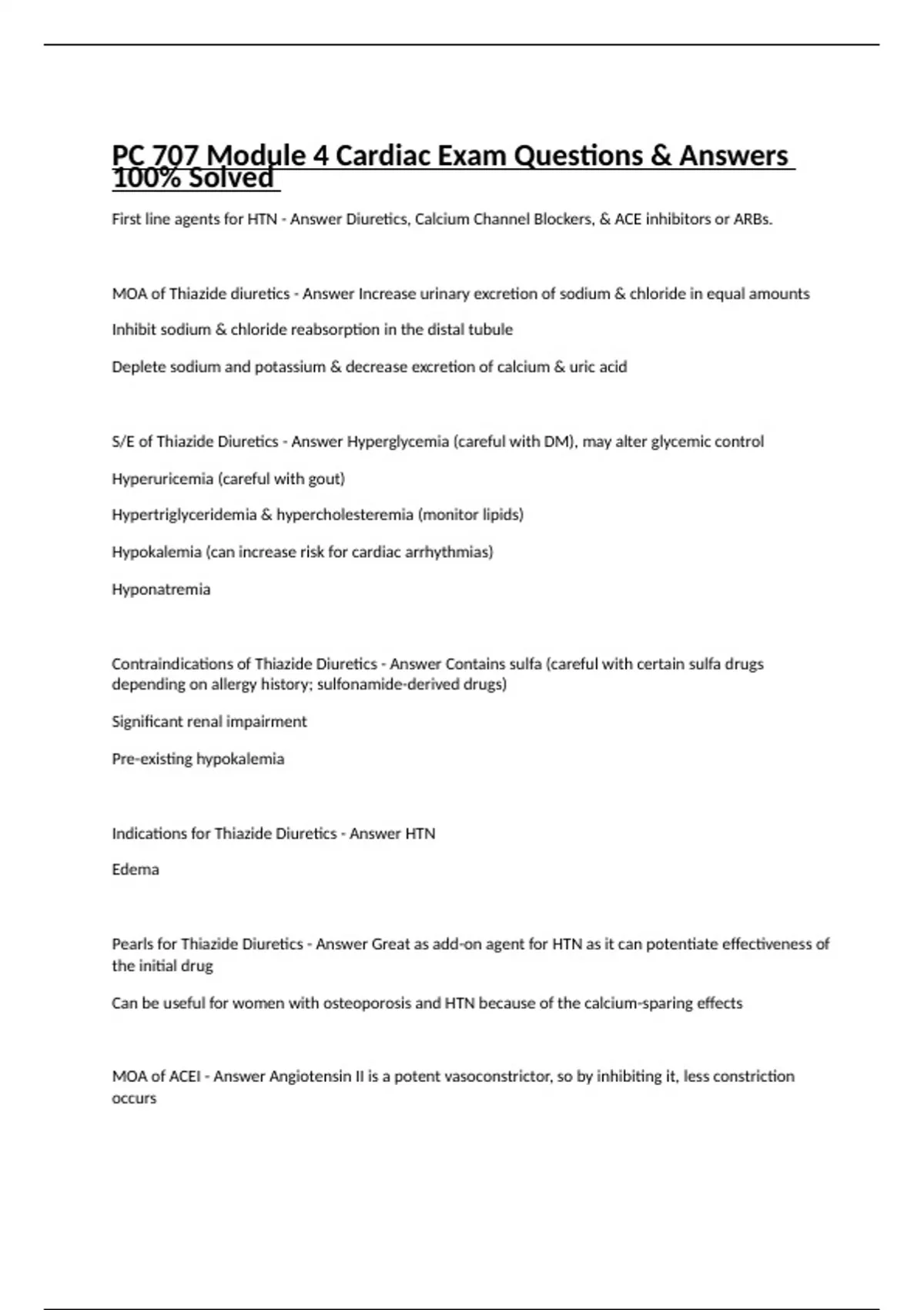 PC 707 Module 4 Cardiac Exam Questions & Answers 100% Solved