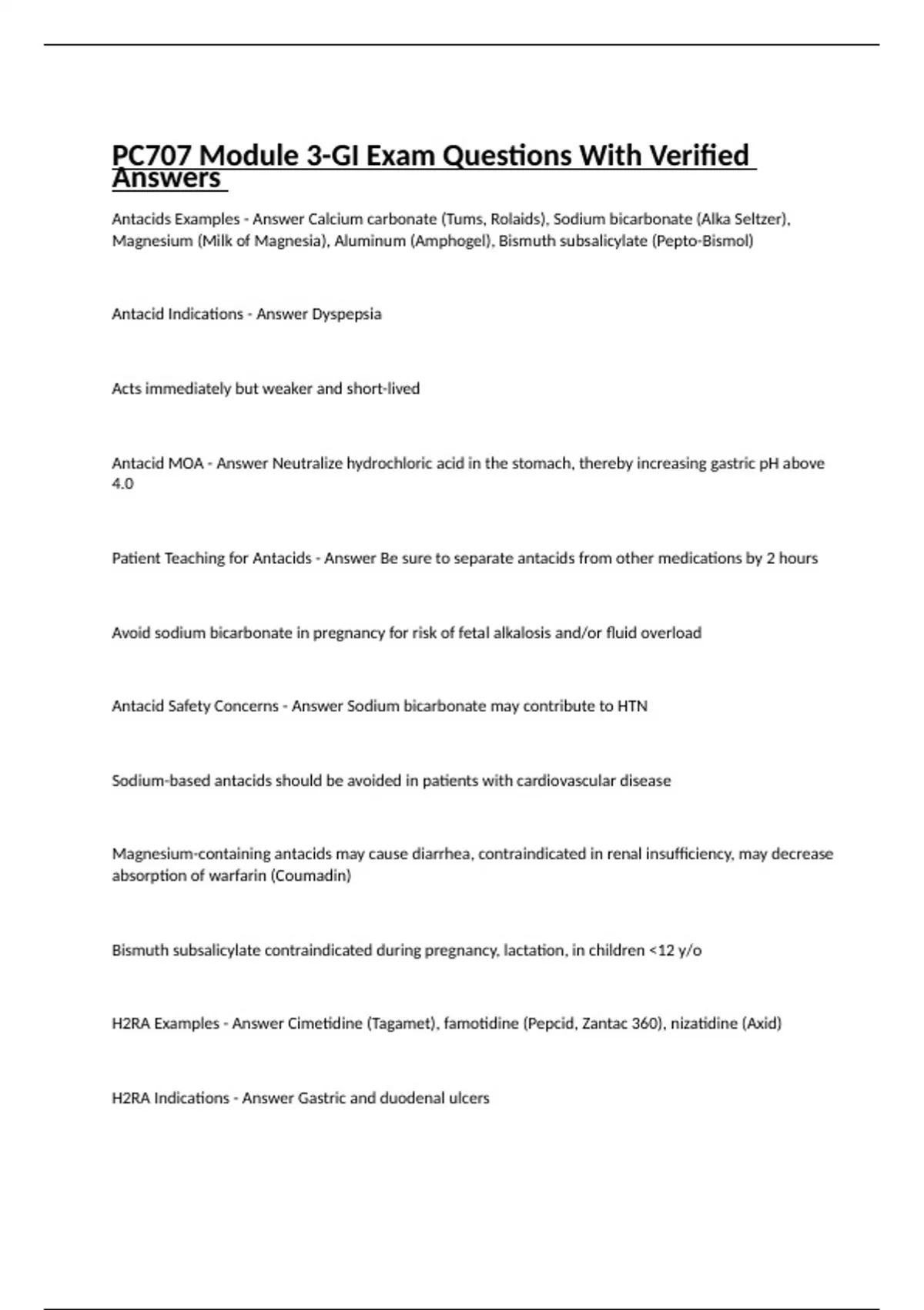 PC707 Module 3-GI Exam Questions With Verified Answers
