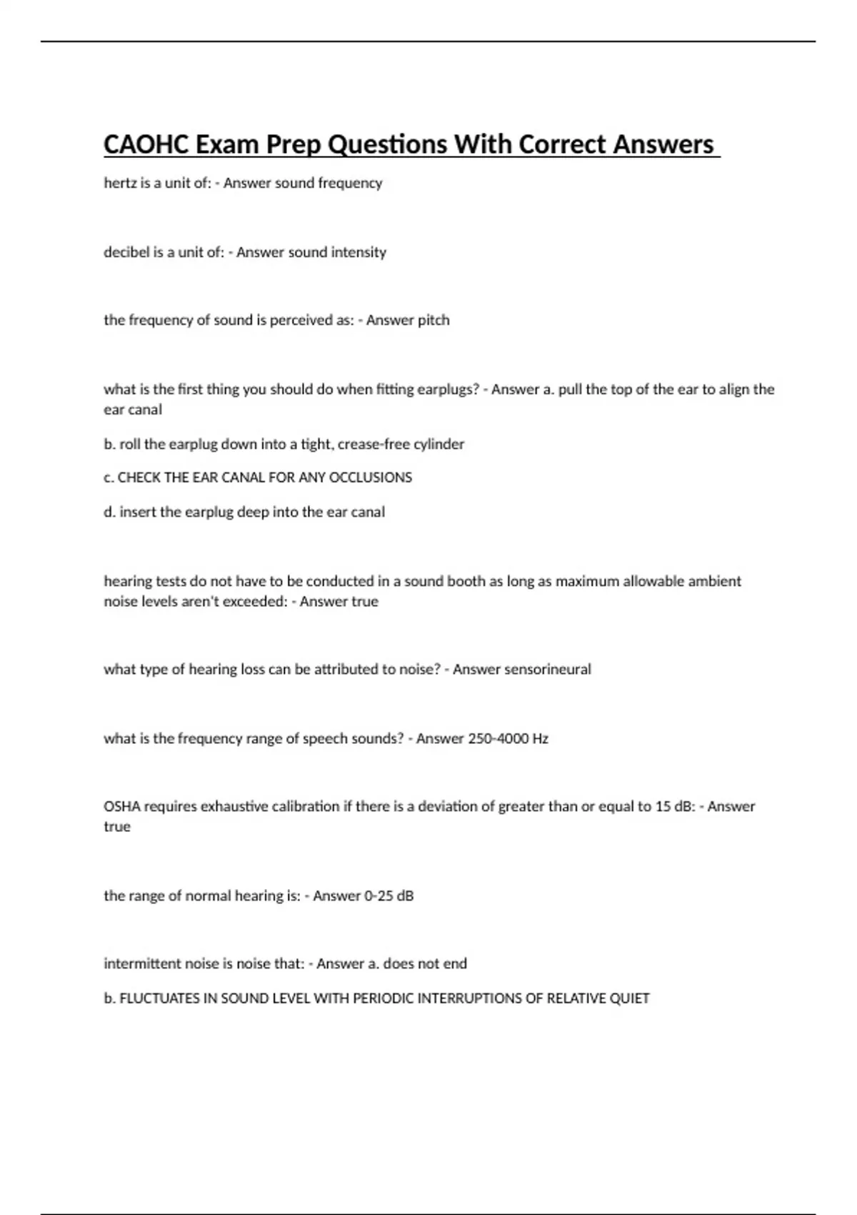 CAOHC Exam Prep Questions With Correct Answers