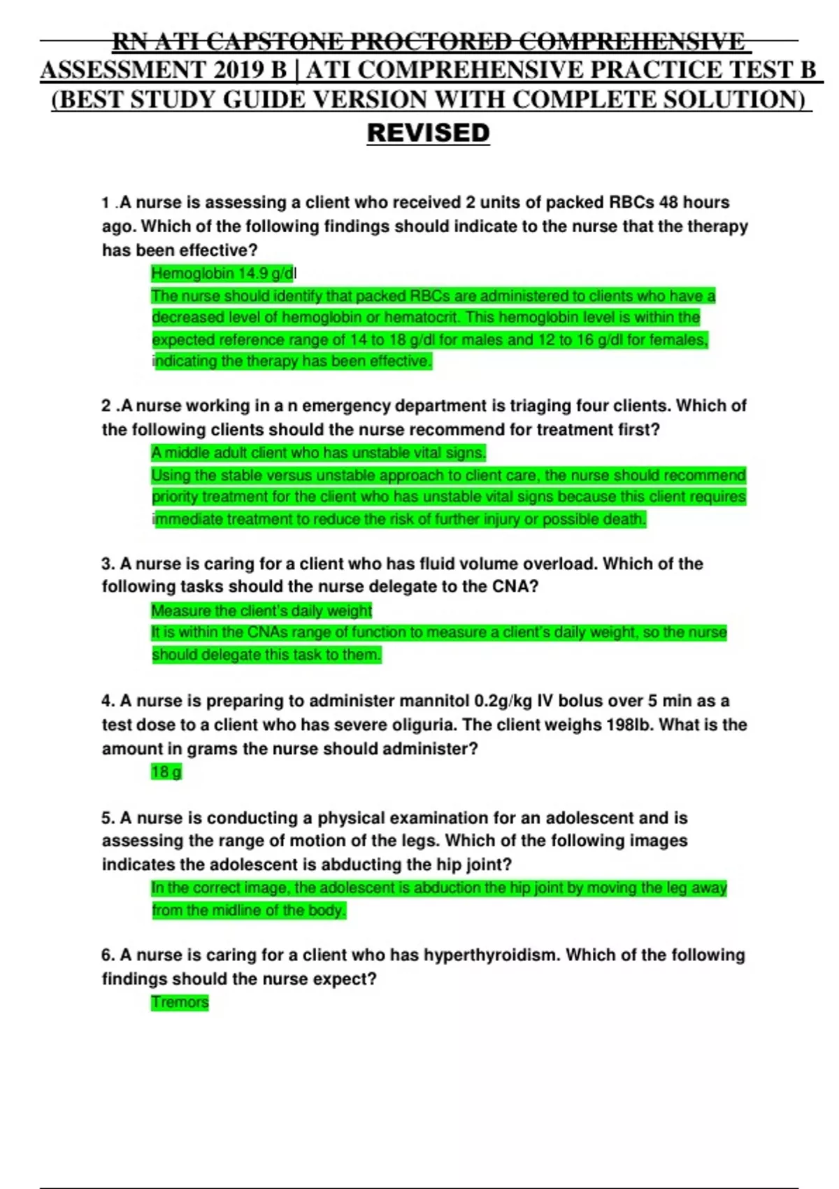 RN ATI CAPSTONE PROCTORED COMPREHENSIVE ASSESSMENT 2019 B | ATI COMPREHENSIVE PRACTICE TEST B (BEST STUDY GUIDE VERSION WITH COMPLETE SOLUTION) REVISED RN ATI CAPSTONE PROCTORED COMPREHENSIVE ASSESSMENT 2019 B | ATI COMPREHENSIVE PRACTICE TEST B (BEST STUDY GUIDE VERSION WITH COMPLETE SOLUTION) REVISED