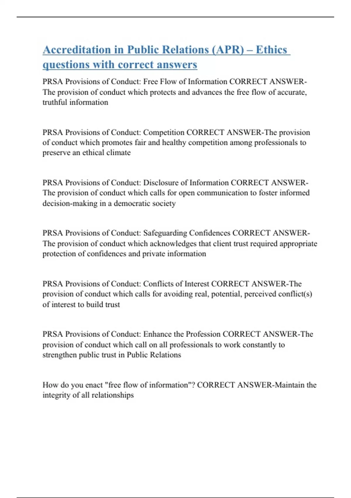 Accreditation in Public Relations (APR) – Ethics questions with correct answers