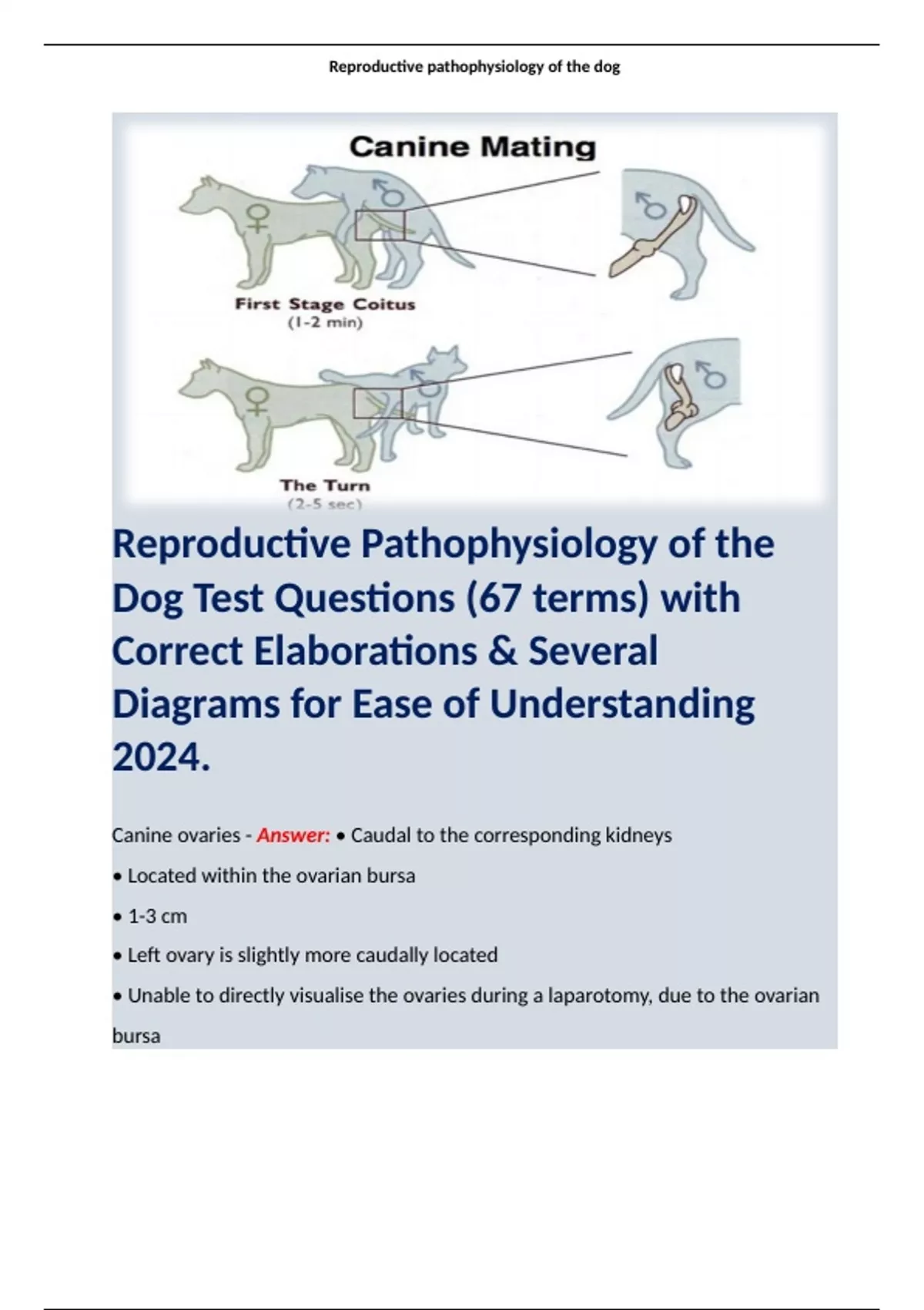 Reproductive Pathophysiology of the Dog Test Questions (67 terms) with Correct Elaborations & Several Diagrams for Ease of Understanding 2024.
