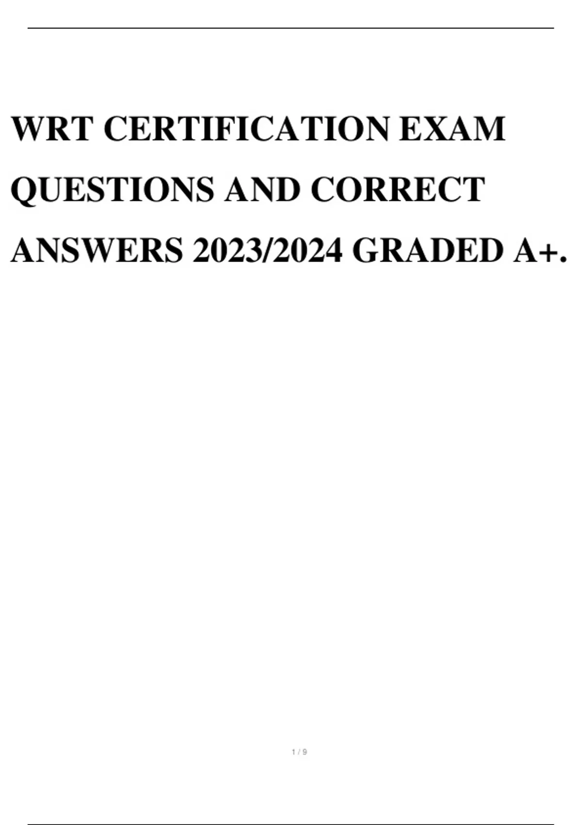 WRT CERTIFICATION EXAM QUESTIONS AND CORRECT ANSWERS 2023/2024 GRADED A+.