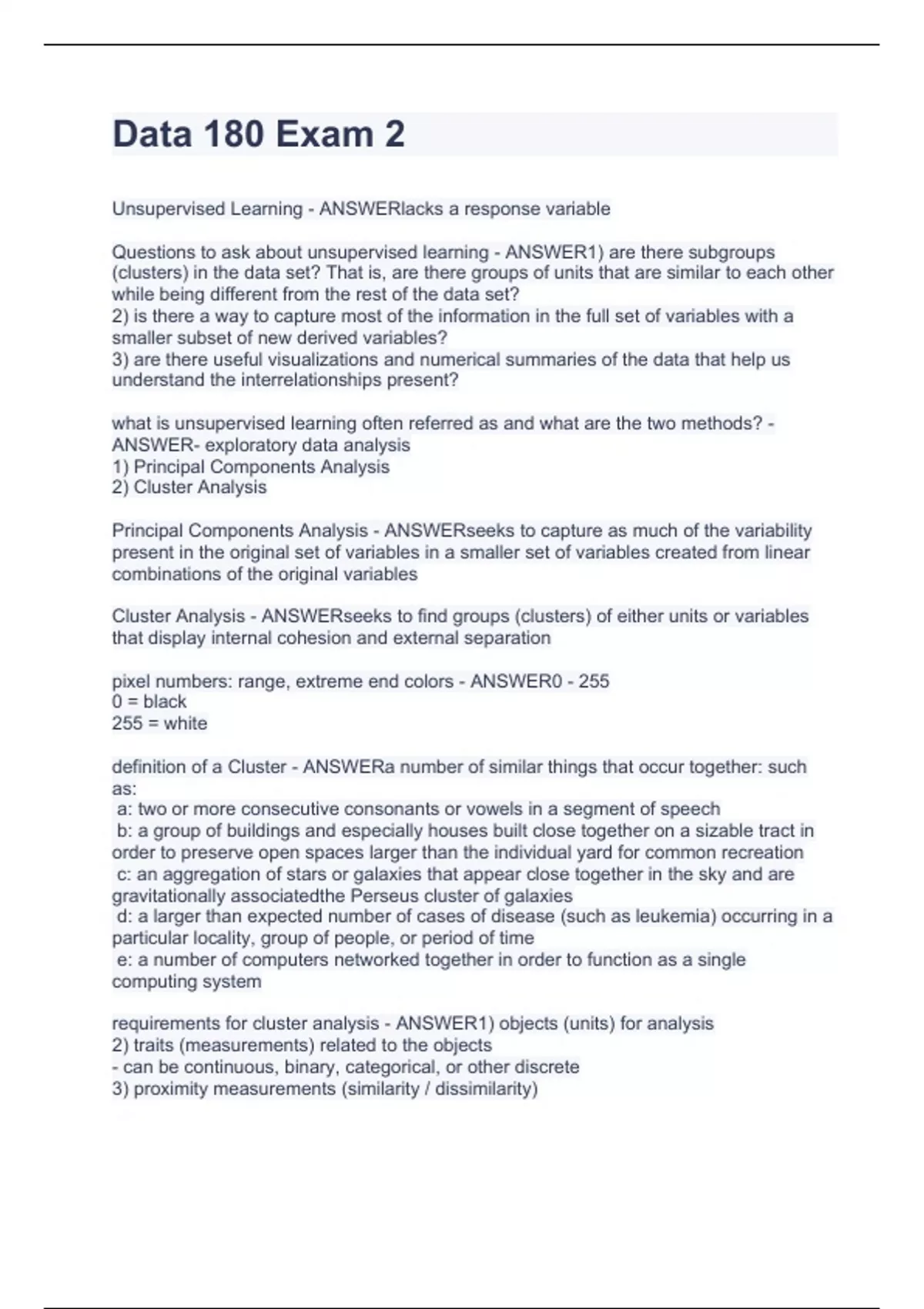 Data 180 Exam 2.Assignments having exams and answers