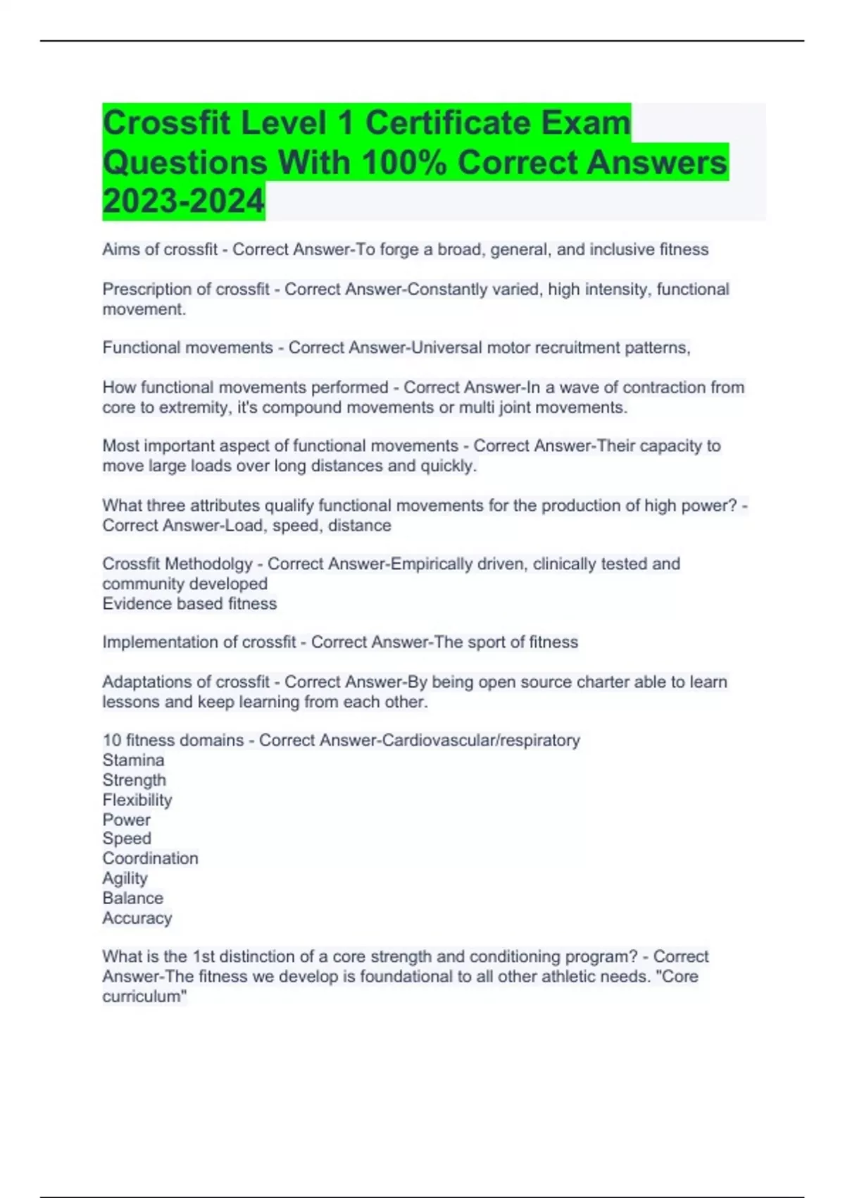 Crossfit Level 1 Certificate Exam Questions With 100% Correct Answers