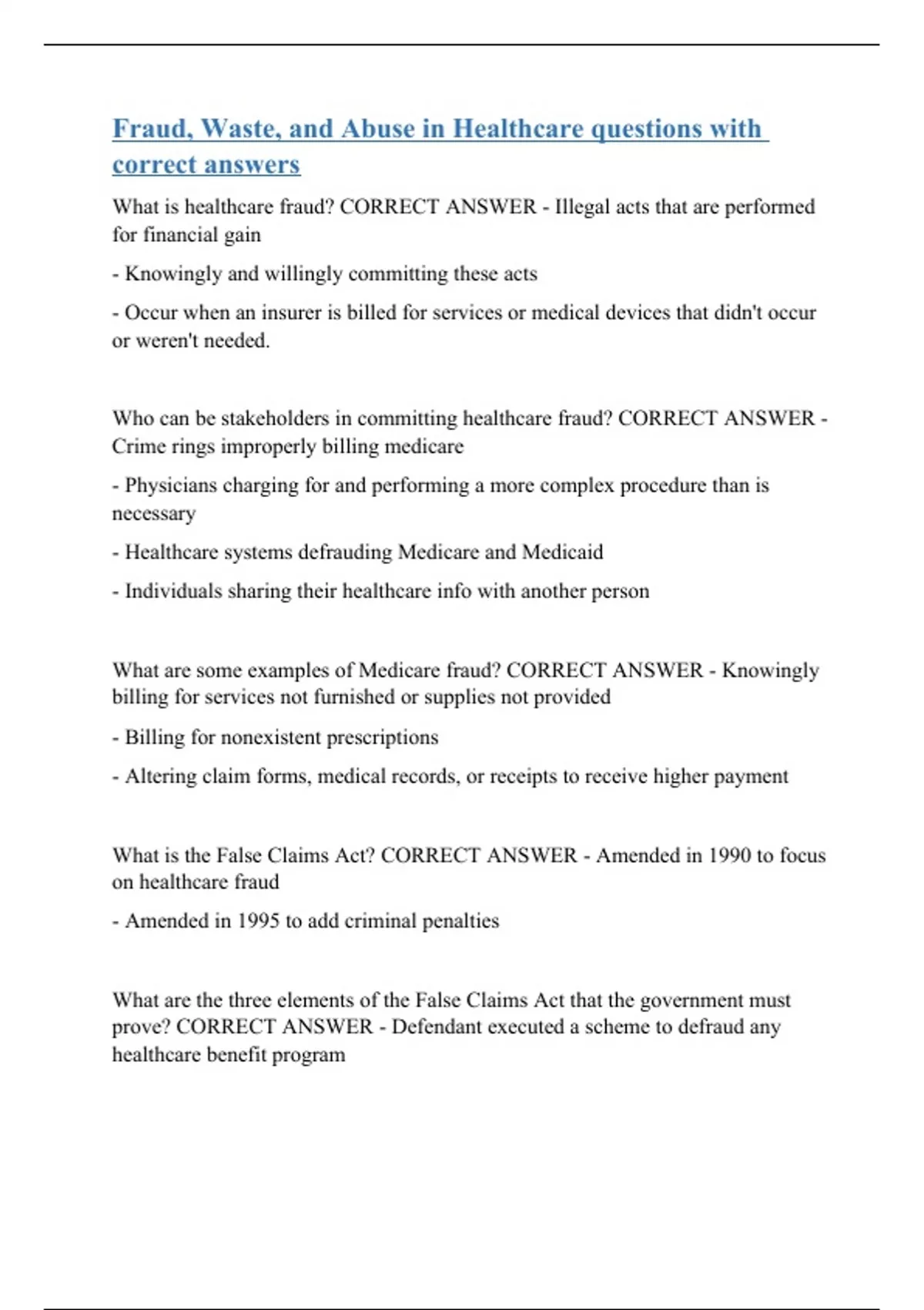 Fraud, Waste, and Abuse in Healthcare questions with correct answers